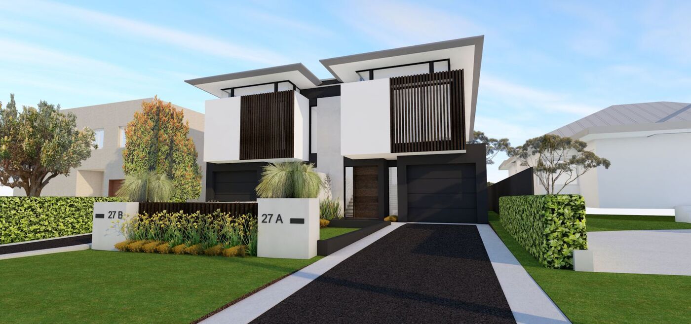 DA Approved site for 2 large, 3 bedroom duplexes + media room.