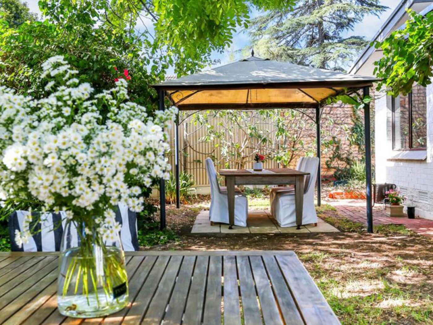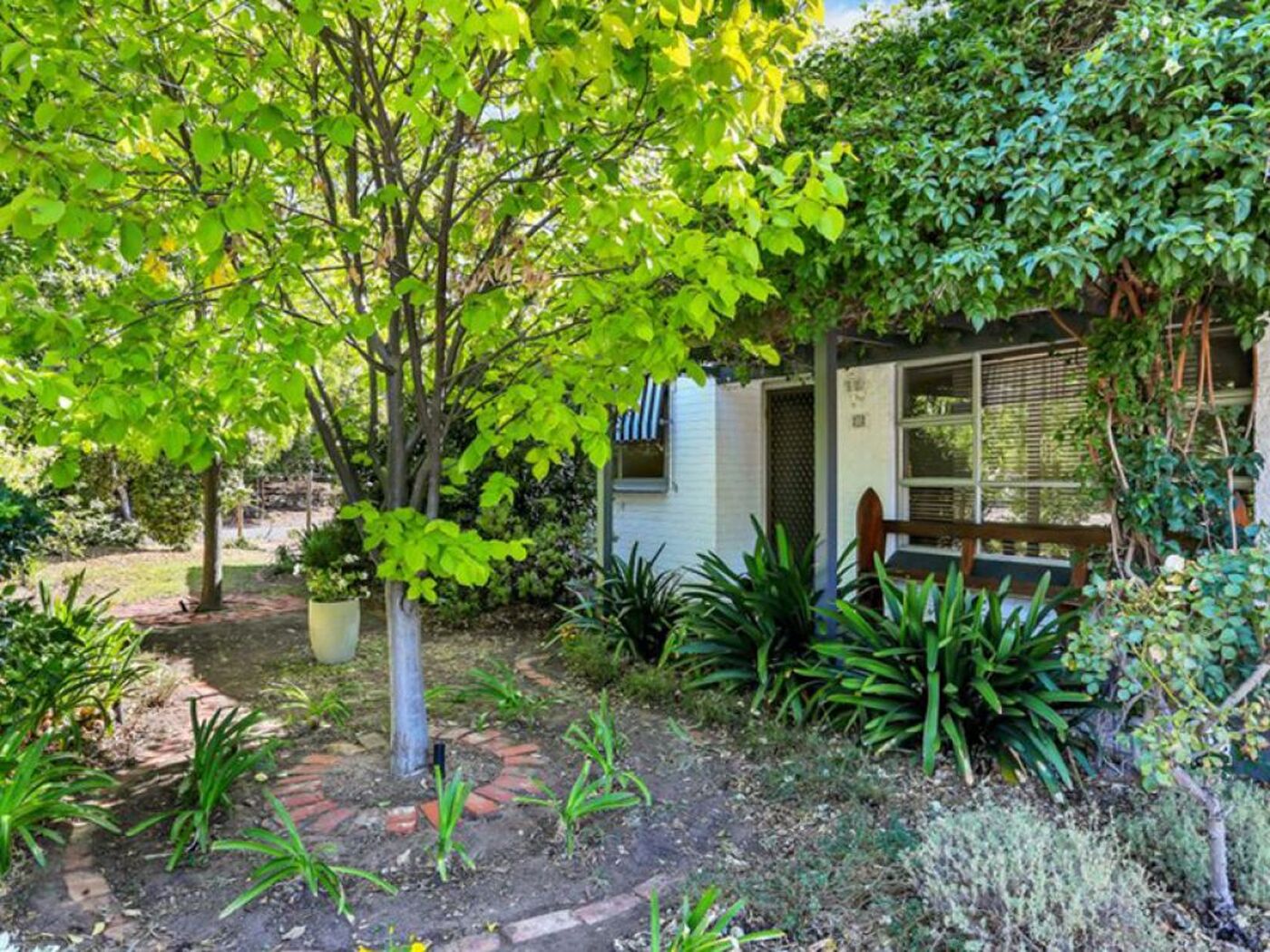 The existing comfortable contemporary home comes complete with a delightful cottage garden and an abundance of established fruit trees.