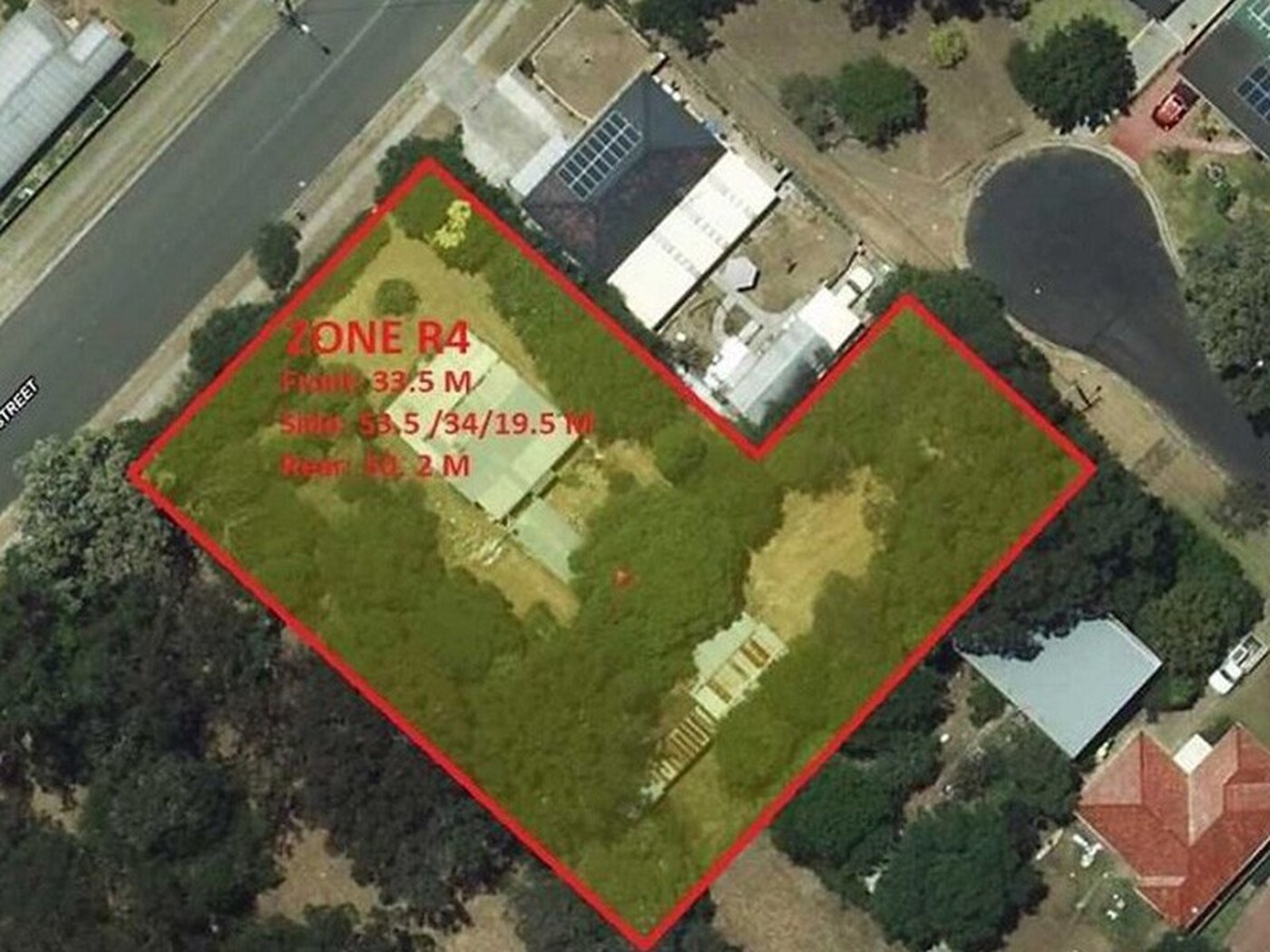 - Dimension: Frontage 33.5 m, Depth 53.5 m, rear 50.2 m