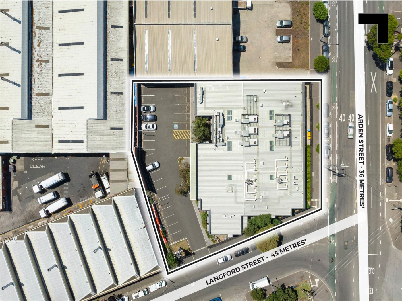 A protean exemplar of how dynamic a commercial opportunity can be, from every point you look at it — especially the corners. This significant 2,288 sqm* site is the ultimate multi-level development opportunity, a strategic occupier’s dream or income producing investment. Offering an extraordinary blend of cutting-edge office space with a state-of-the-art laboratory, the building boasts a multi-million dollar fit-out and is equipped with advanced ventilation, gas, electrical power, and water systems, all tailored to support high-end research / technology operations. Access and frontage are straightforward advantages here, with the corner block affording dual-street access from both Langford Street and Arden, and 22 dedicated parking spaces secured behind gated fencing. Upon entry, you're greeted by a professional reception area, which leads to well-appointed client meeting rooms and executive offices. A high-profile address meets a high-visibility profile, with over 35 m* of frontage to busy Arden Street and over 45 m* to Langford Street. This combined 80+ metres* will showcase your logo, hoarding, or name on a billboard to potentially 20,000 daily commuters.