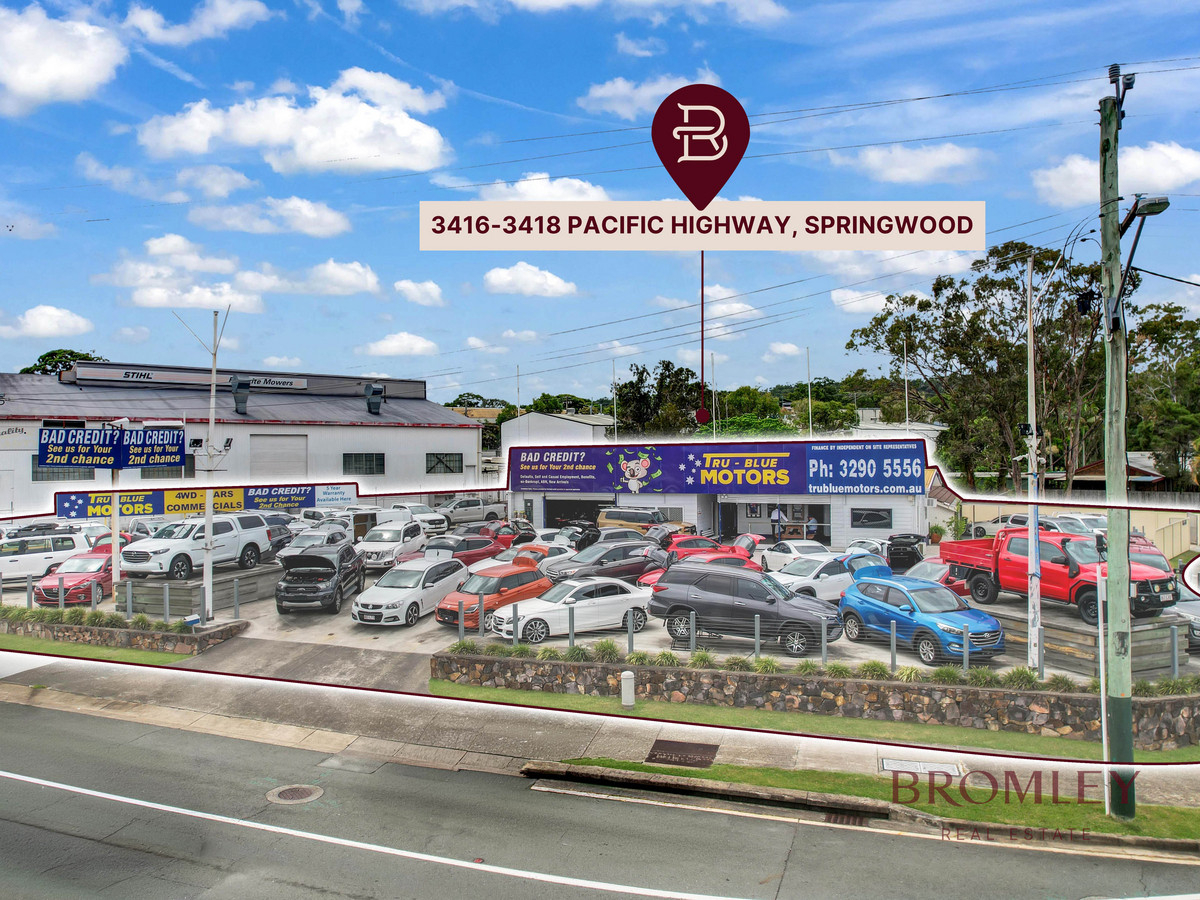 Bromley Real Estate are pleased to present to the market, 3416-3418 Pacific Highway, Springwood for sale via Expressions of Interest (EOI) closing 4pm, 13th of April 2026. This is an extremely rare opportunity to secure a 2,103 sqm car yard with development potential in a highly sought-after location.