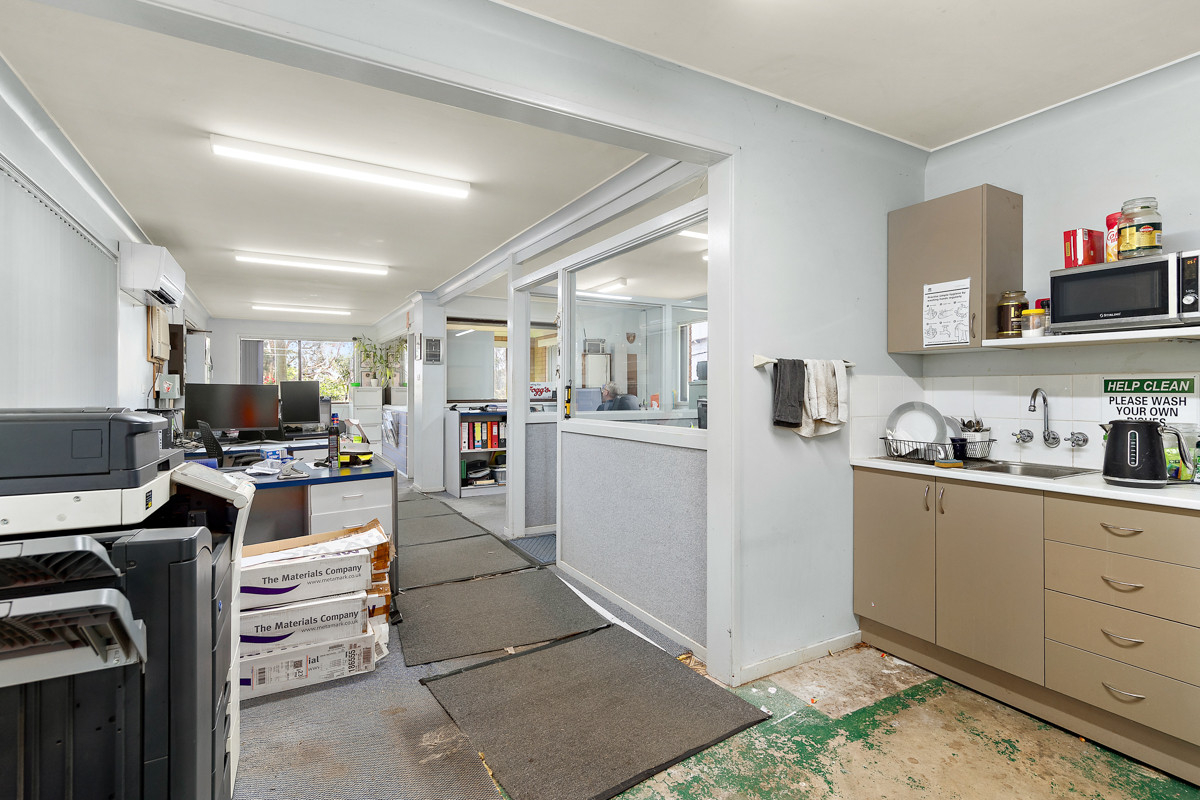 - Three-bedroom dwelling at front (office use, mostly original)