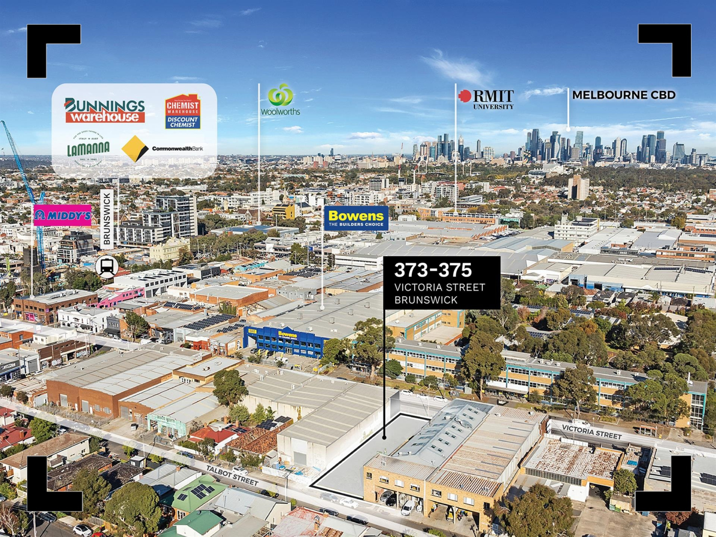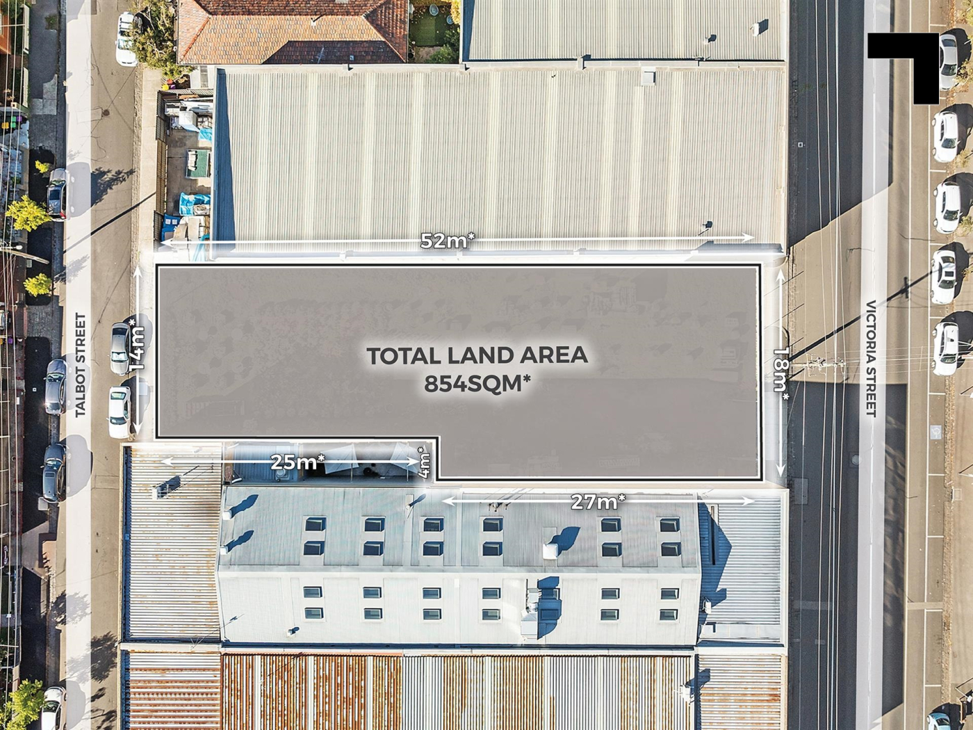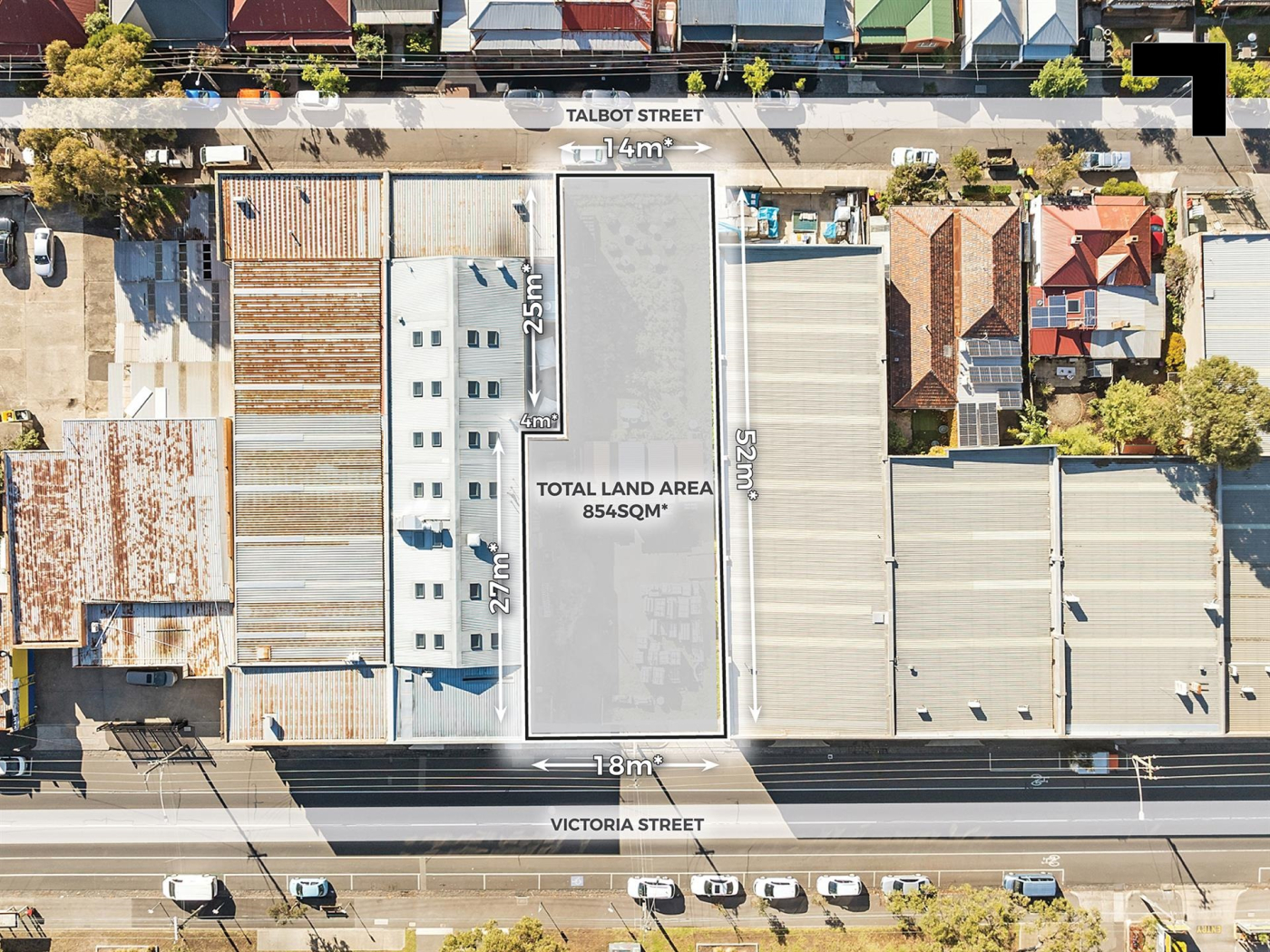 Offered for the first time in decades, this rare flagship Brunswick landholding is the kind of opportunity that owner occupiers and developers thrive on — a blank canvas with dual street access, solid zoning, and prime positioning in one of Melbourne’s most energetic growth corridors. Set on 854.36 sqm* of land with a commanding 18 m* frontage to Victoria Street and 14 m* to Talbot Street, these ambitious four corners will see your commercial future turn a big one. Whether you’re thinking of a warehouse expansion, a sleek new showroom, or hardstand and hold — this North Star block delivers the rare foundation to build something serious. You're surrounded by Brunswick’s biggest; towering BTR developments, Sydney Road’s buzzing retail strip, established commercial players, and a fast-growing residential catchment. Brunswick railway station and the 19 tram are a short walk, bike paths aplenty, and major arterials within easy reach. An industrial 3 zoning meets generous access via the extra-wide Victoria street, perfect for truck and trailer movement — a rare inner-city perk.