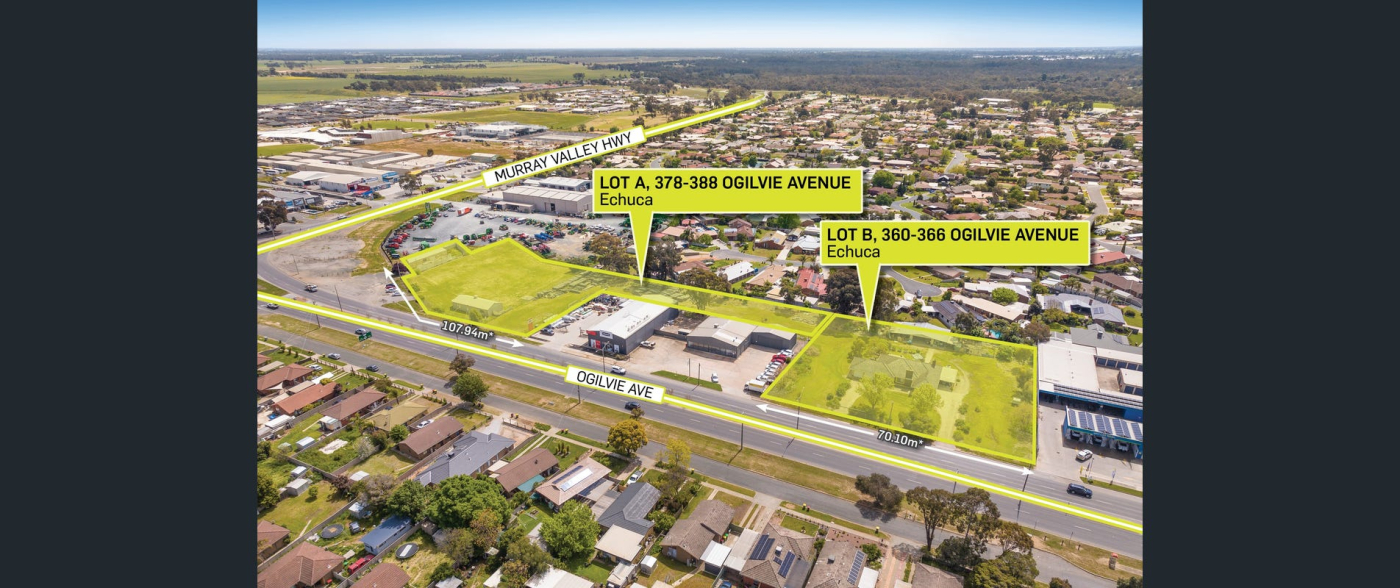 Fitzroys, in conjunction with Charles L King & Co. is pleased to offer 378-388 & 360-366 Ogilvie Avenue, Echuca for sale via Expressions of Interest, closing Thursday, 1st December at 1pm. The sites are to be sold individually or in one line.