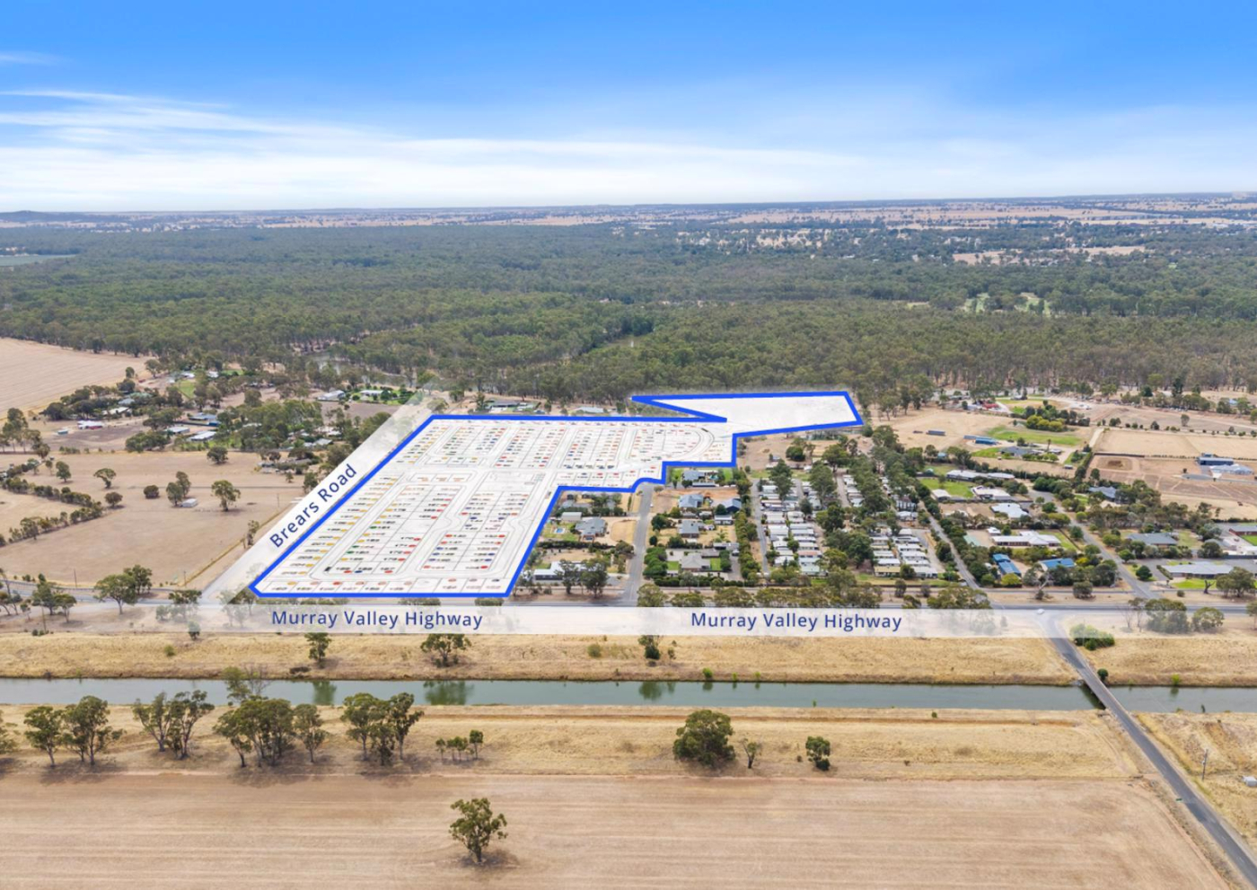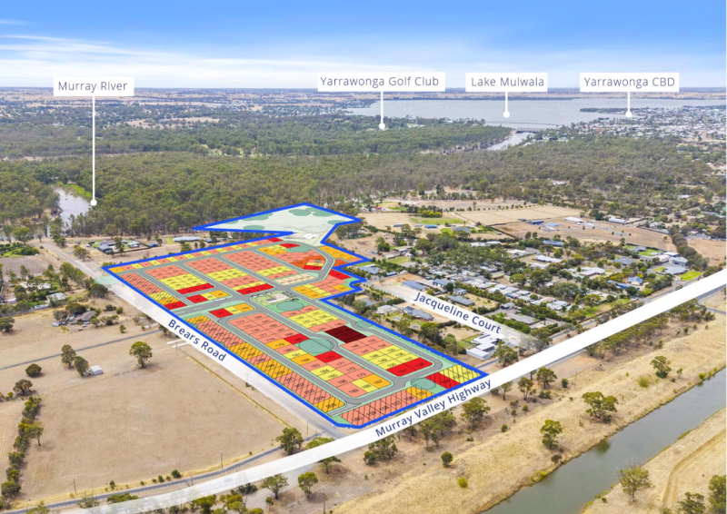 Riverside Yarrawonga is located at the western entry to Yarrawonga and overlooks a river red gum forest that is home to koalas, kangaroos, and an array of bird species which make for iconic sunset viewing. Accessed via Brears Road off the Murray Valley Highway, the site comprises five contiguous parcels with 10, 22, and 38 Brears Road and 4 & 5 Jacqueline Court across a significant land holding of 11.25 hectares*.