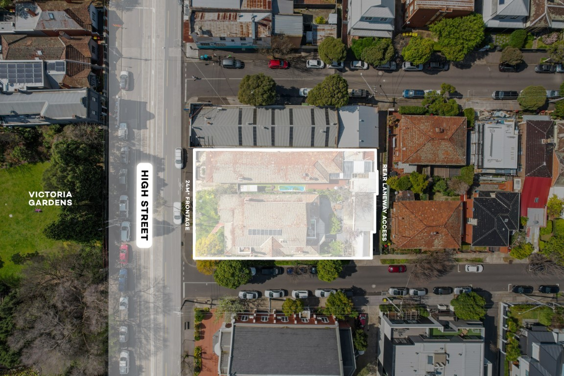 - Positioned on a prime corner landholding of 943sqm with 24m* frontage to High Street and directly opposite Victoria Gardens.