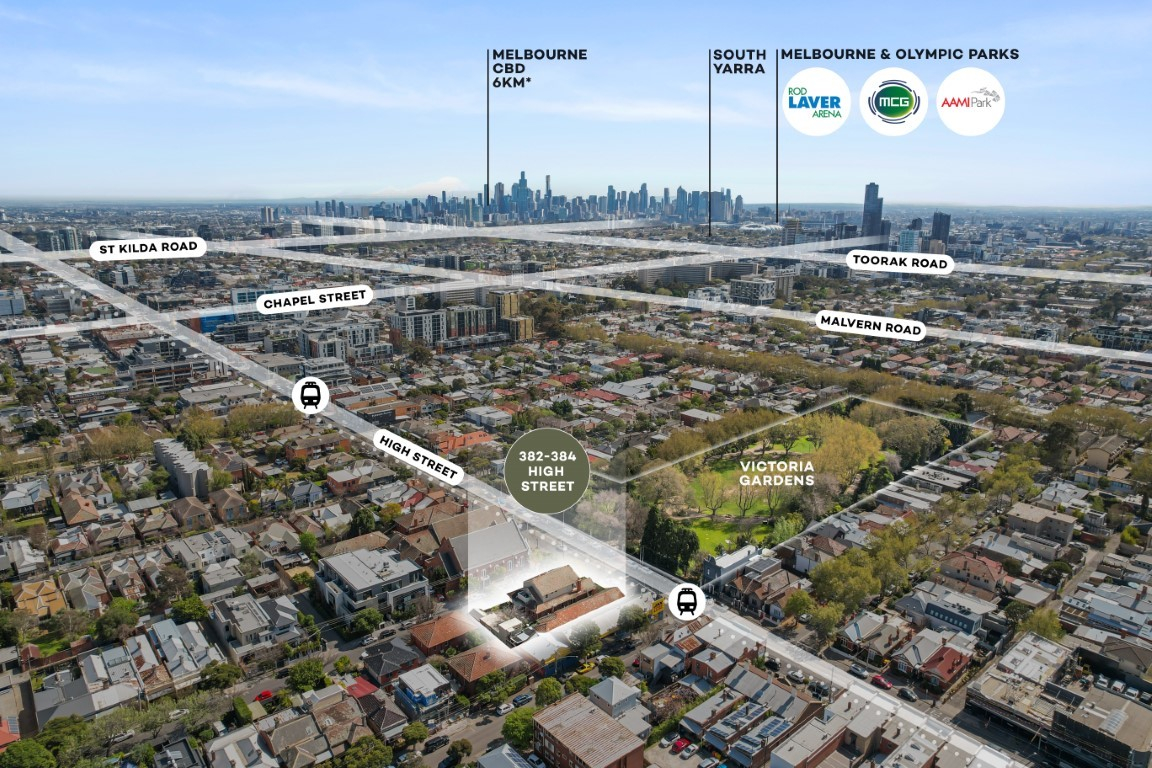 - Exceptional frontage to Stonnington's prestigious High Street, with the proposed apartments offering direct street frontage to Newry Street (40m*) and convenient rear laneway access. These apartments are designed to capture the beautiful northern sun and provide an outstanding outlook over Victoria Gardens and the Melbourne CBD.