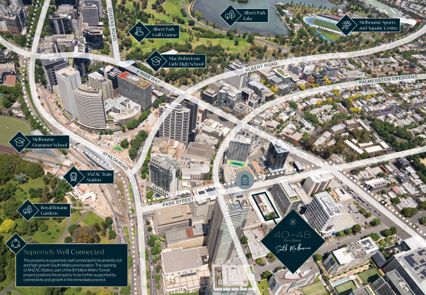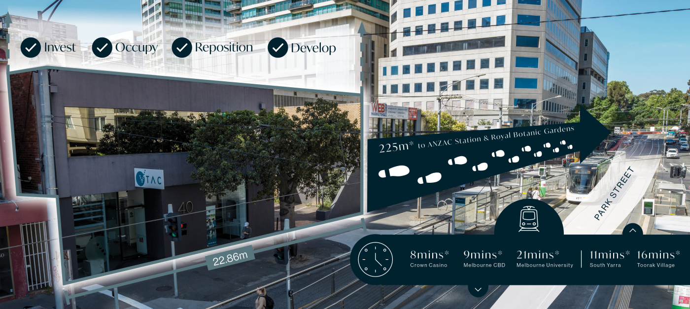Colliers Melbourne City Sales are pleased to deliver 40-48 Park Street, South Melbourne to market, right in time for the upcoming completion of ANZAC Station 225m* away.