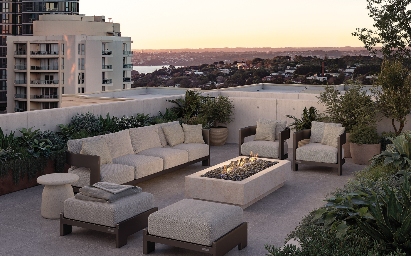 - Ocean views from upper levels and communal rooftop terrace