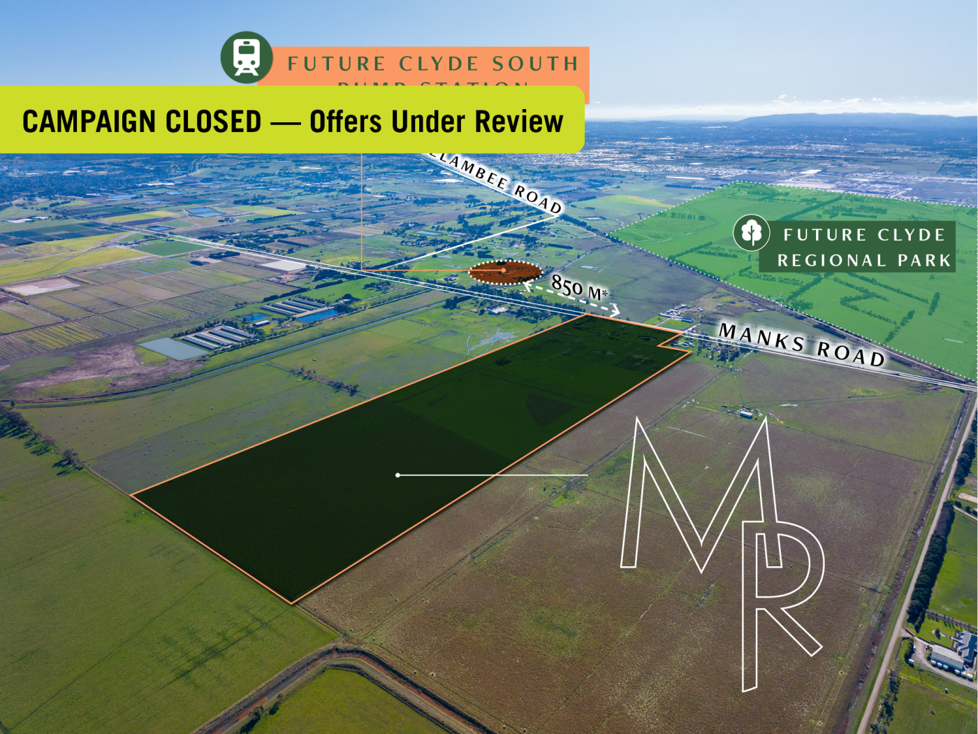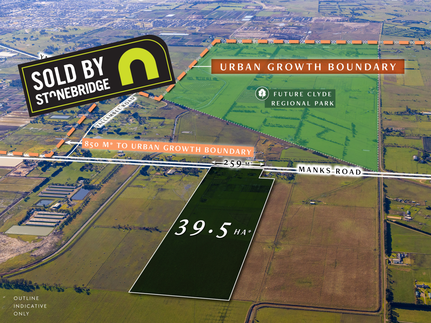 The property is located only 850 m* from the existing Urban Growth Boundary and the Clyde South PSP, and is a logical and strategic investment for significant future growth.