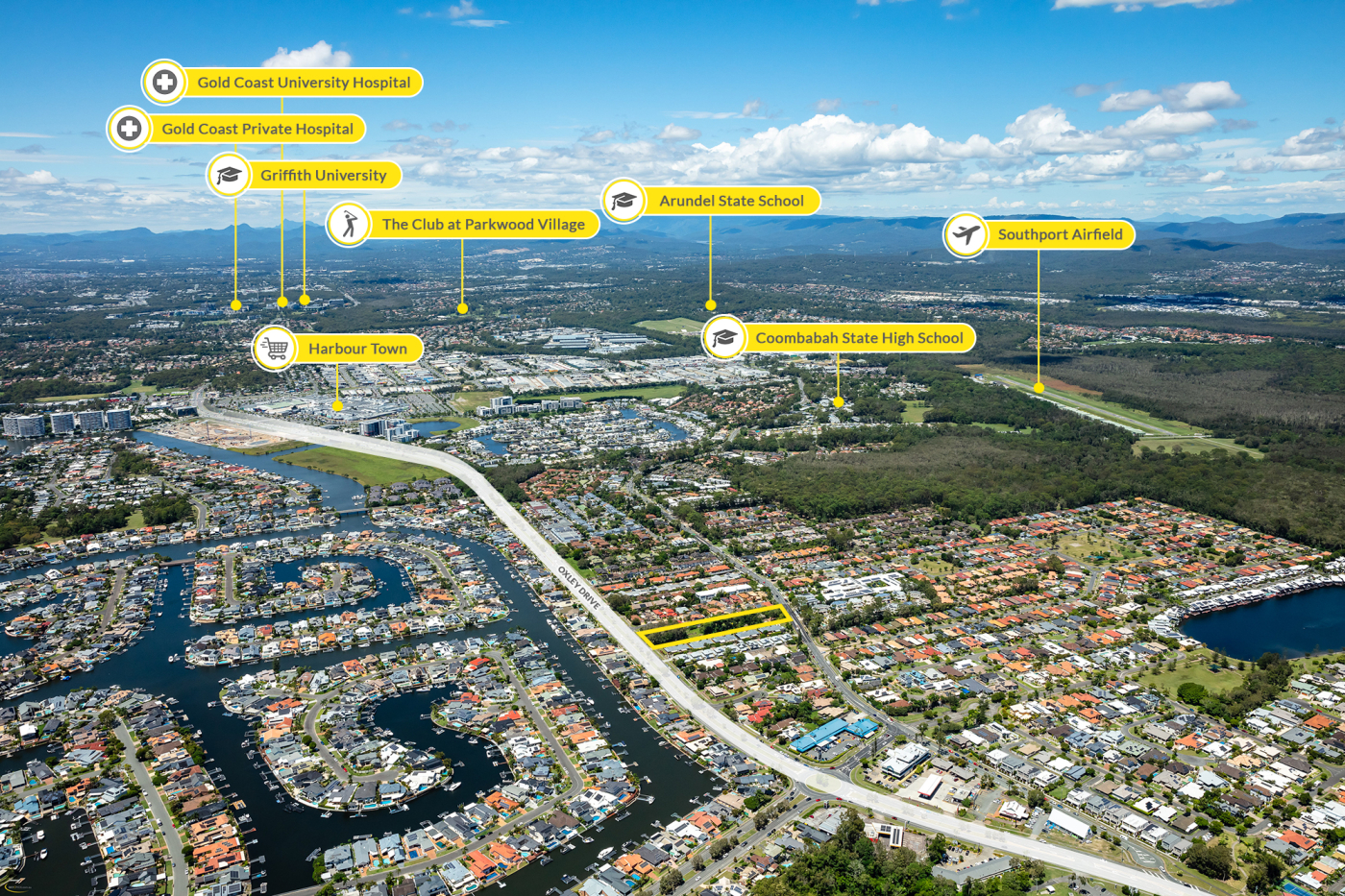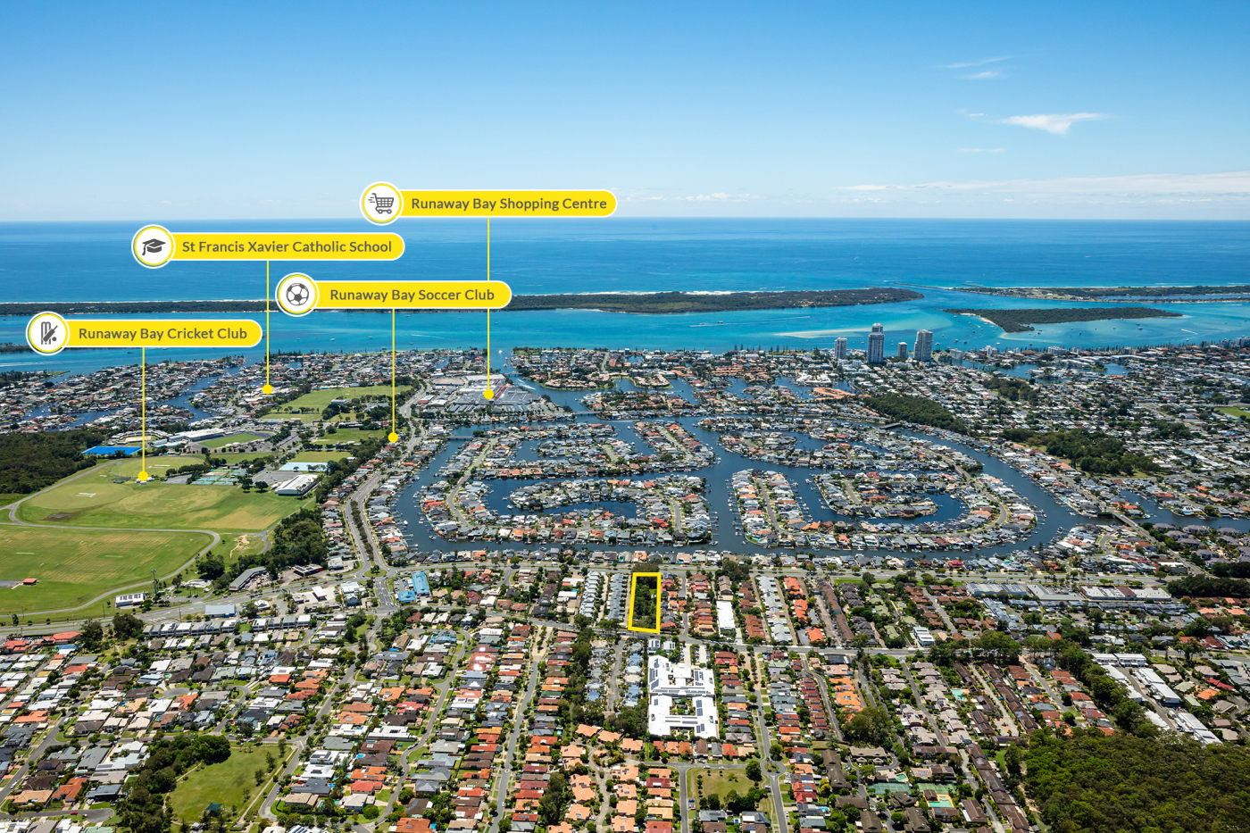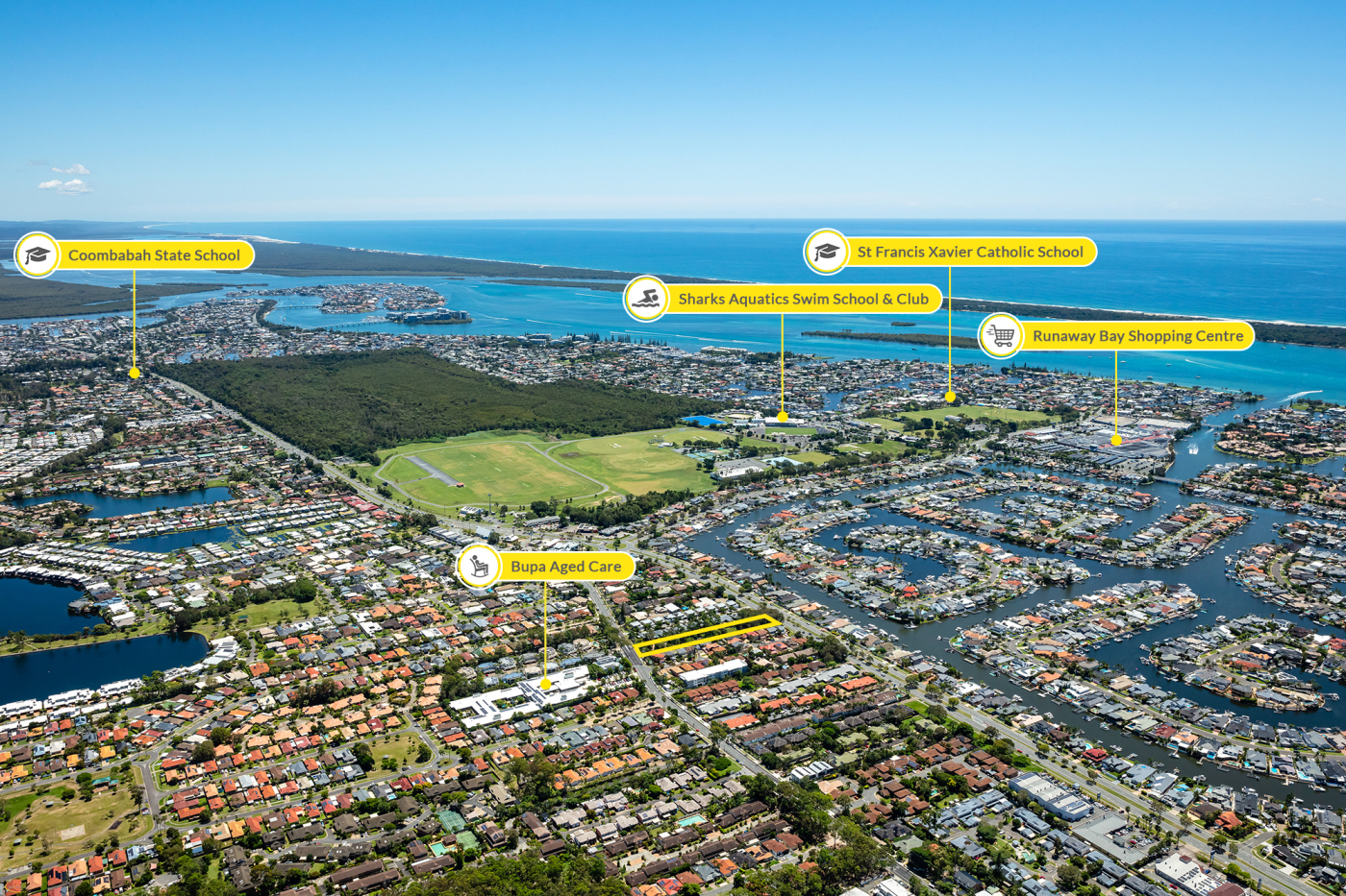 • Well positioned to nearby amenities including, Harbour Town Shopping Centre & Commercial Precinct (2.5km*), Runaway Bay Shopping Centre (1.5km*) and 2.5km* to the Broadwater