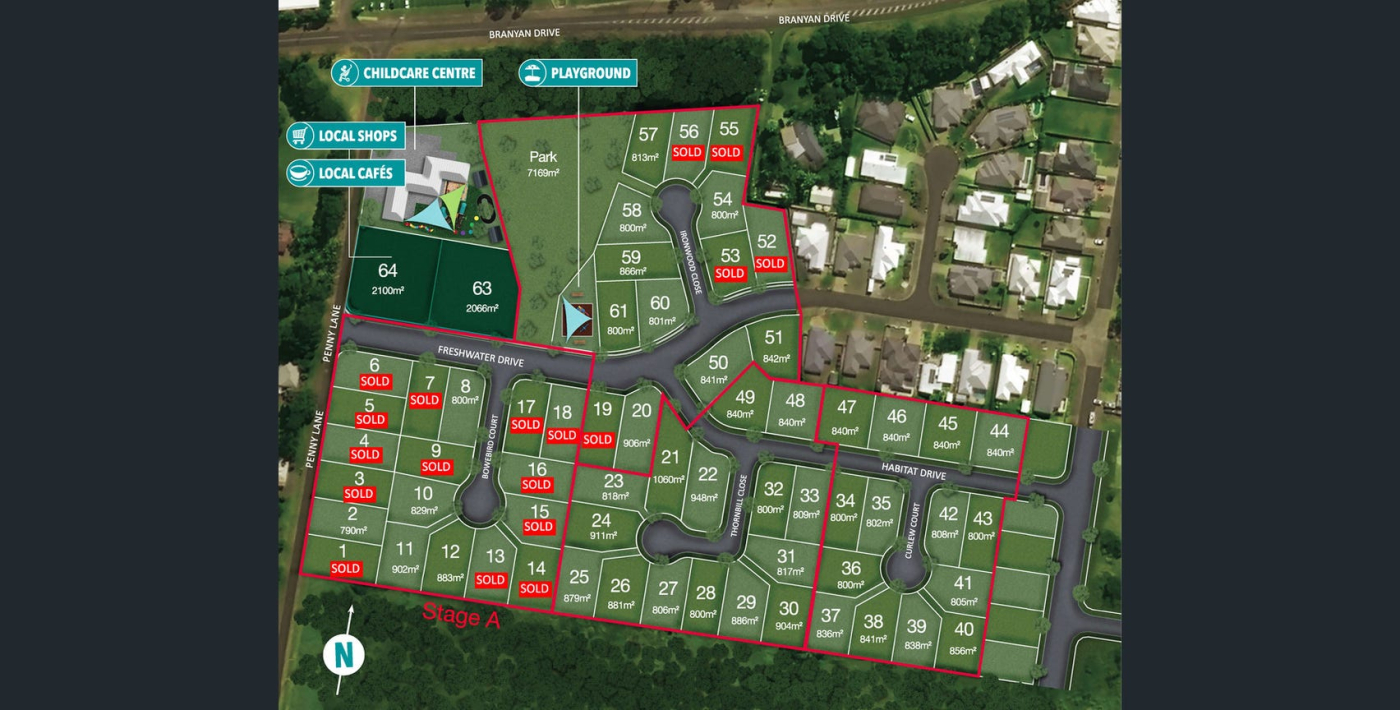 - DA for 84 lots ranging in size from 536m²* - 1,012m²* (average 631m²*)