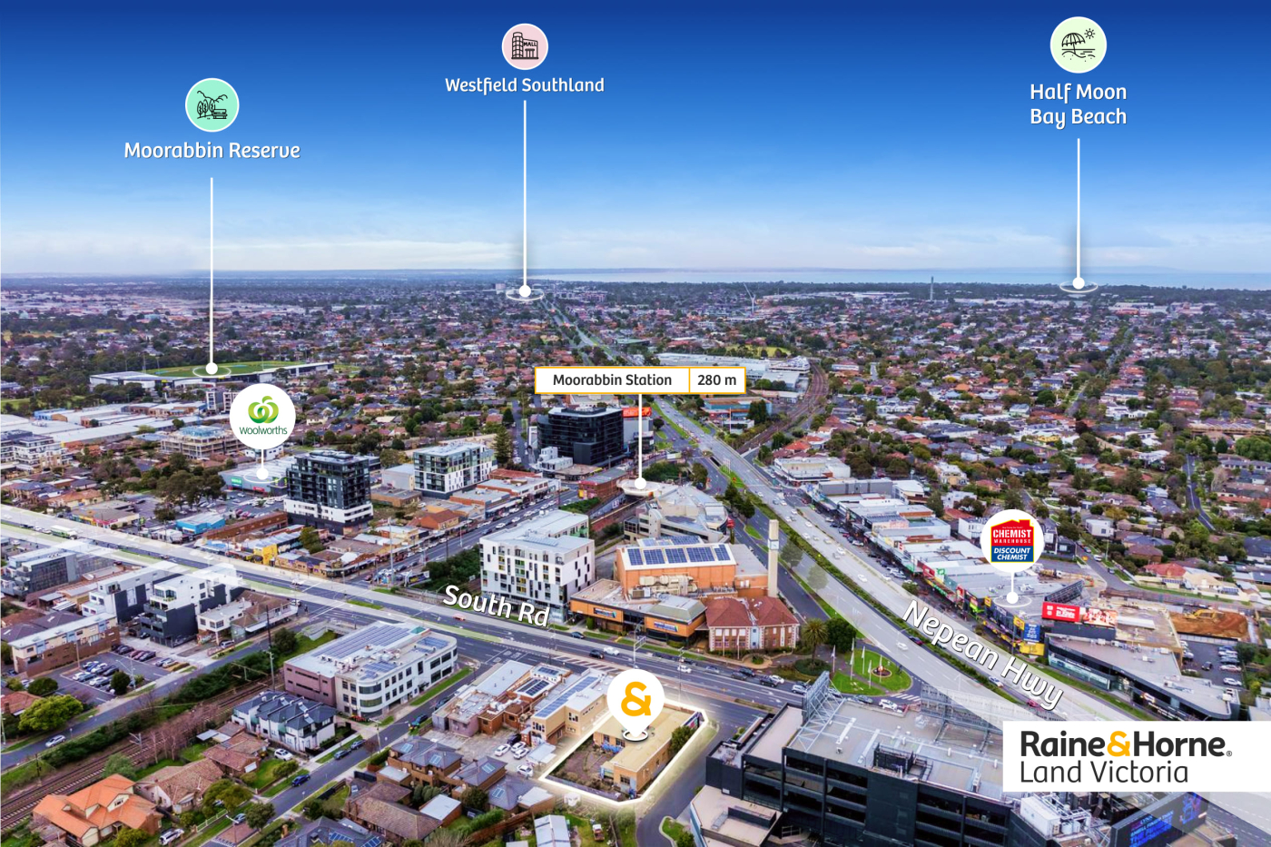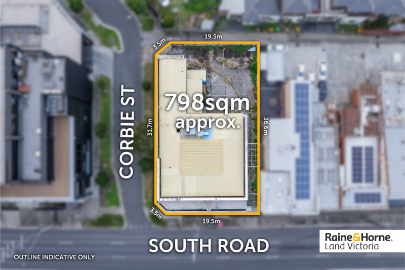 Strategically positioned on the high-exposure corner of Nepean Highway and South Road, this 798 sqm (approx.) Commercial 1 Zoned site sits at the intersection of two major arterial roads carrying substantial daily traffic volumes - delivering unmatched visibility and long-term commercial prominence.
