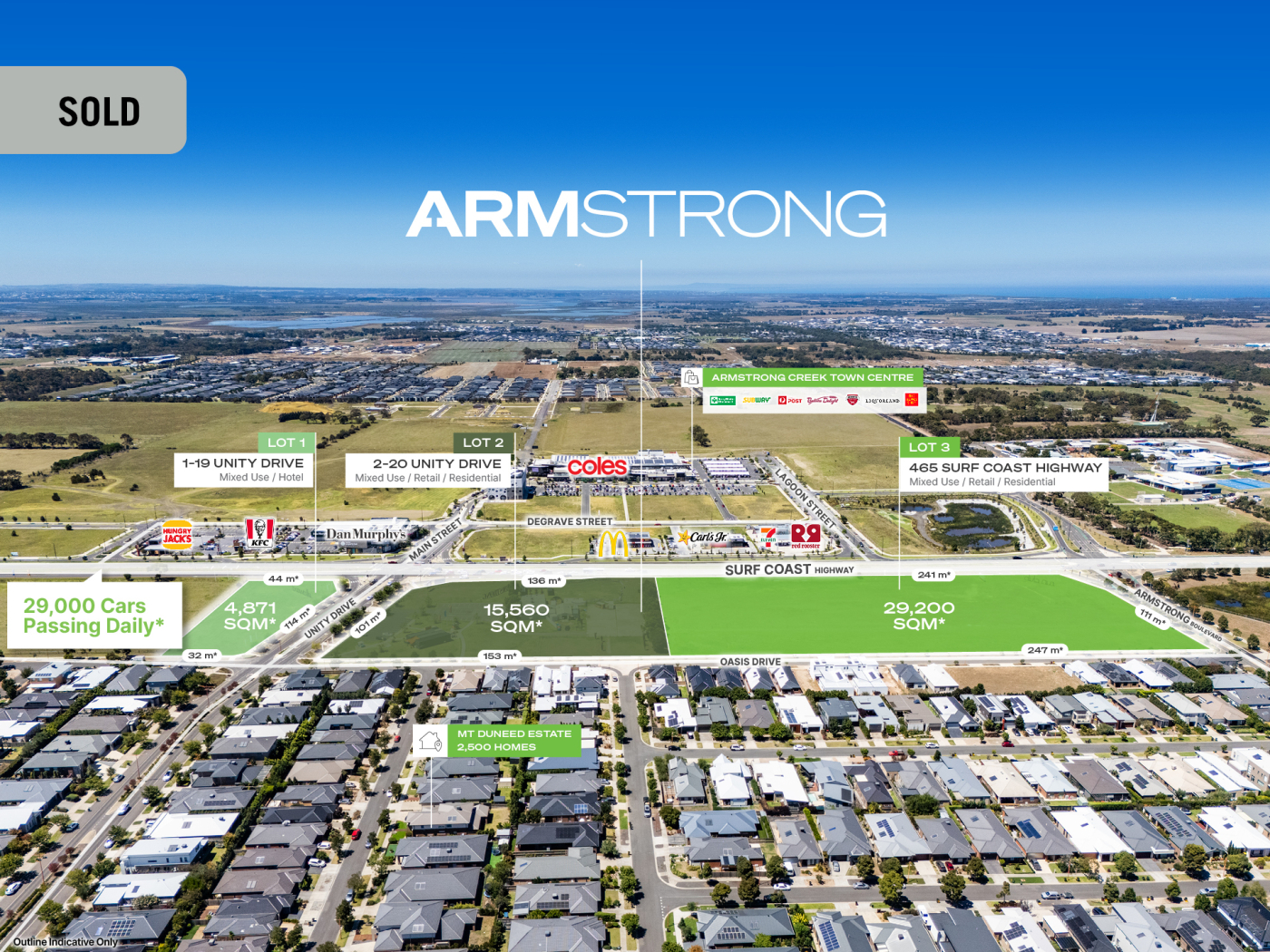 - Comprises three separate titles creating a total site area of 49,631 sqm* opposite the Armstrong Creek Town Centre