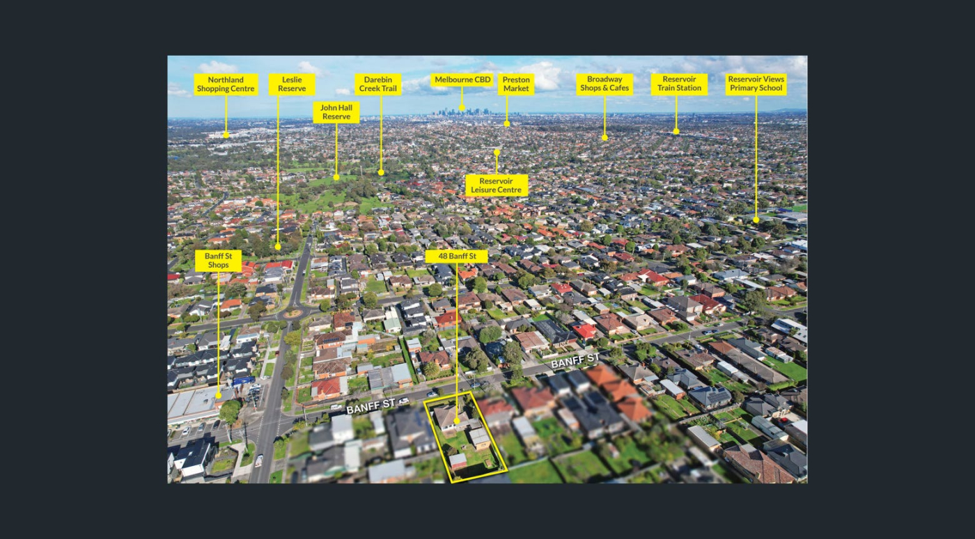 Introducing a truly rare opportunity to acquire a superb residential allotment of 832sqm (approx.) northern rear facing aspect, in an outstanding Reservoir neighbourhood. This original weatherboard home with an 80's sense of nostalgia is now awaiting an inspired future. Featuring a classic three bedroom floor plan with a family bathroom, spacious living room, dining room and kitchen/meals.