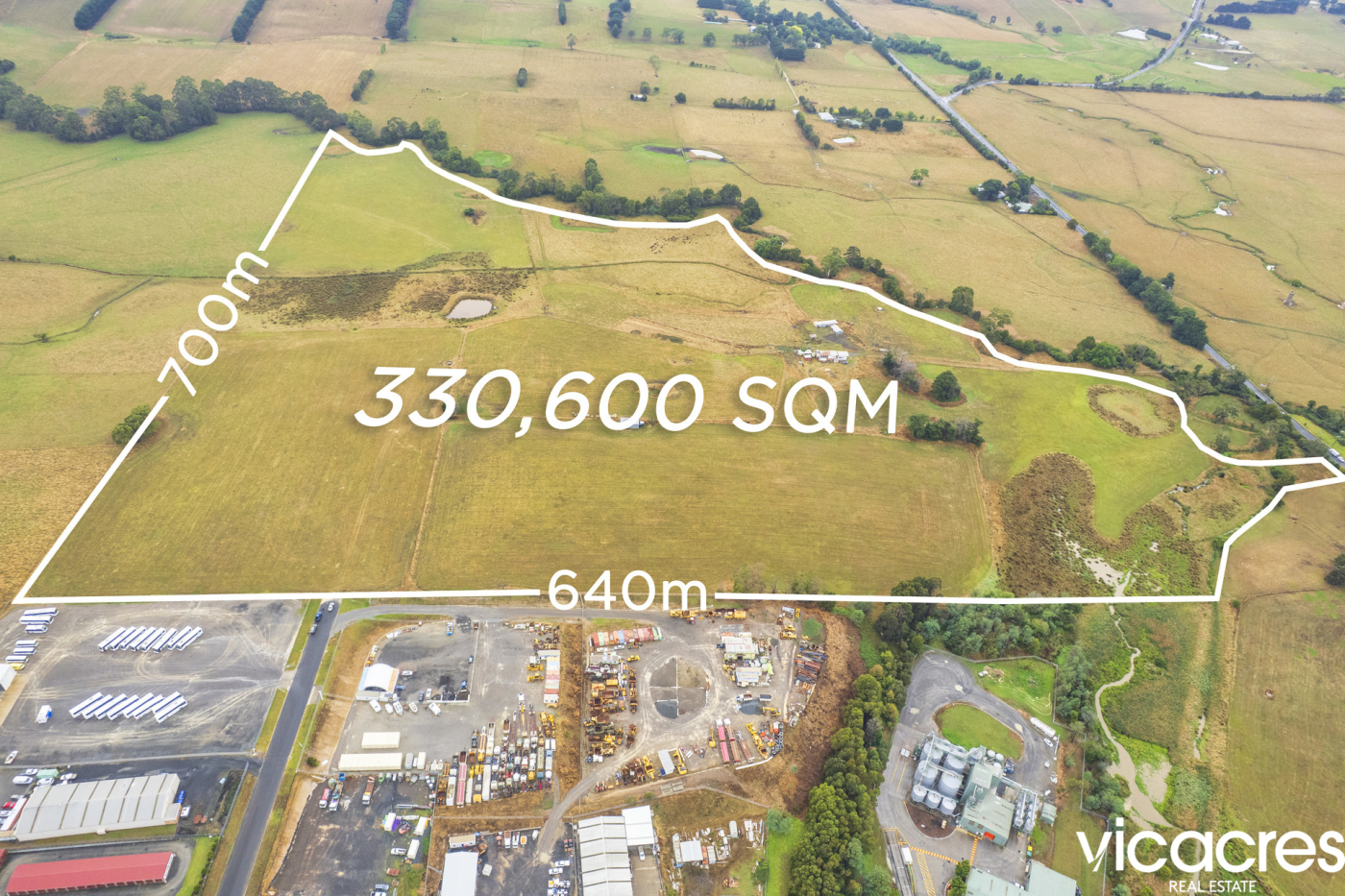 Comprising approximately 330,600 sqm (33.06 hectares / 81.6 acres), this substantial landholding adjoins the established Leongatha Industrial Precinct and provides genuine development scale in a market where large-format sites are rarely transacted.