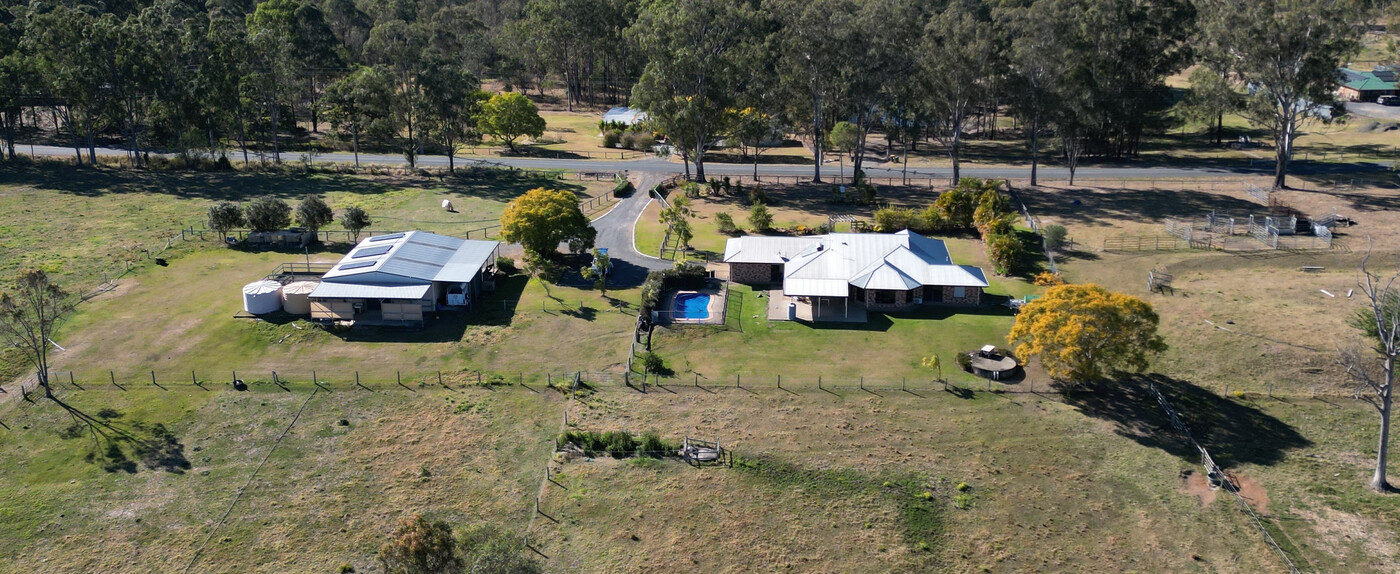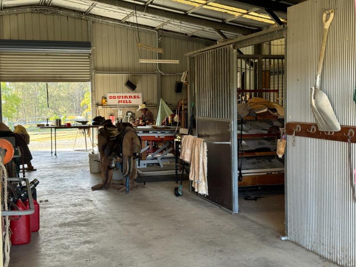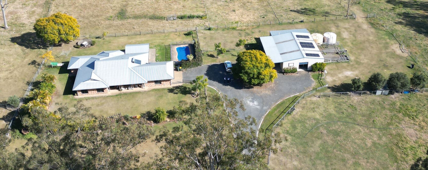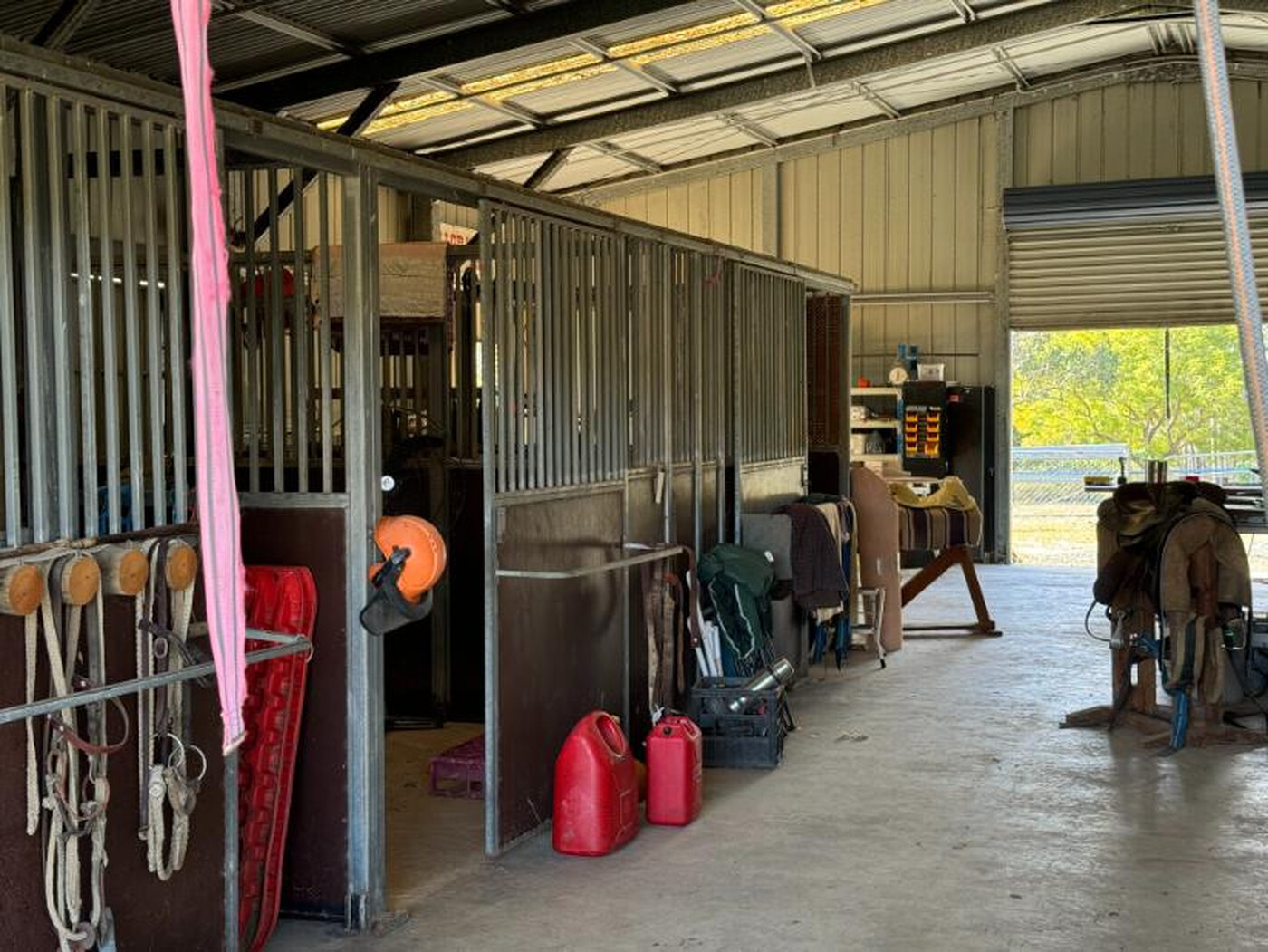 • 180m² (15m x 12m) metal-clad warehouse with external awnings incorporating four individual stables and separate amenities.