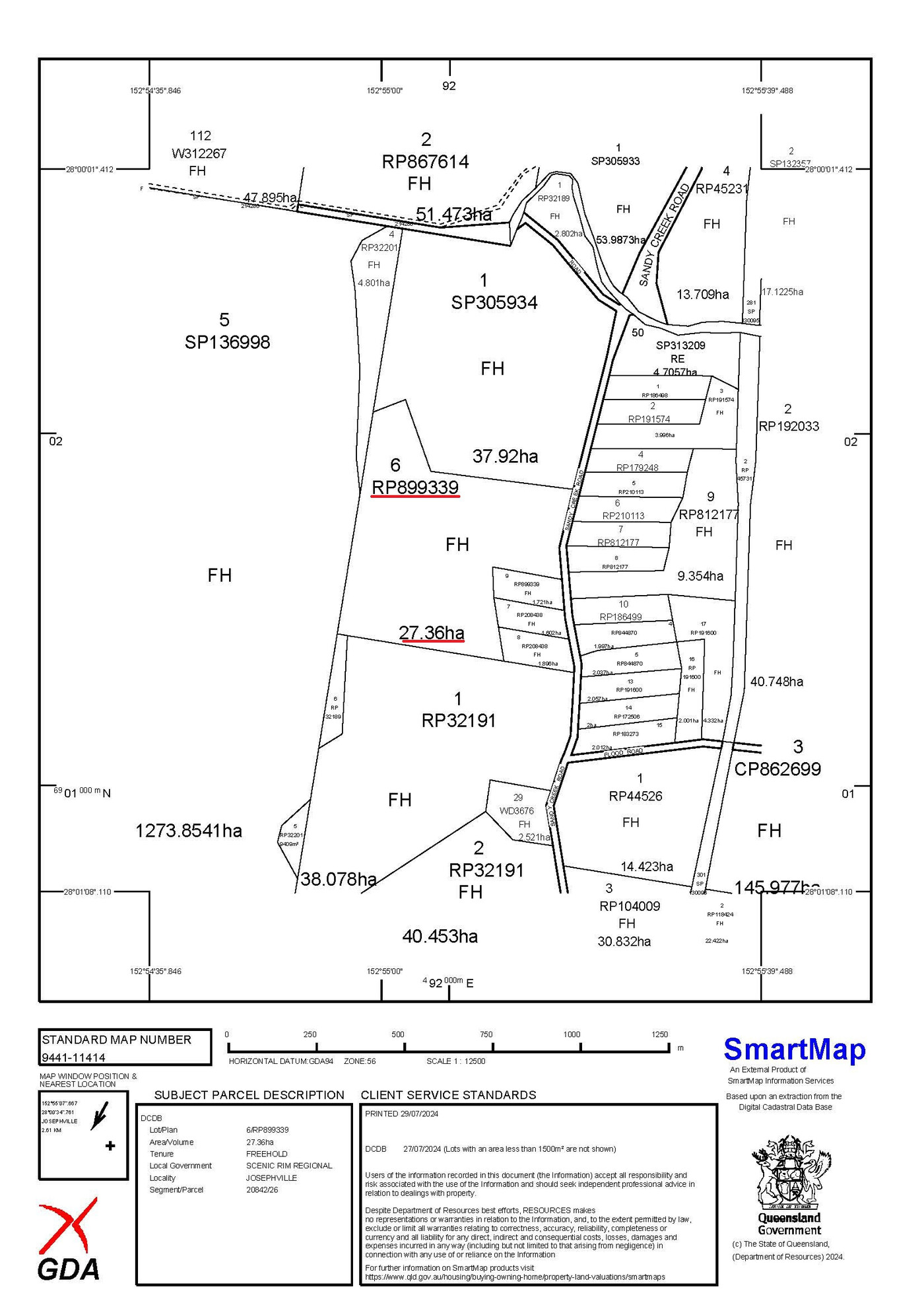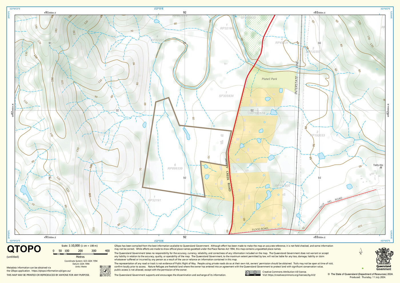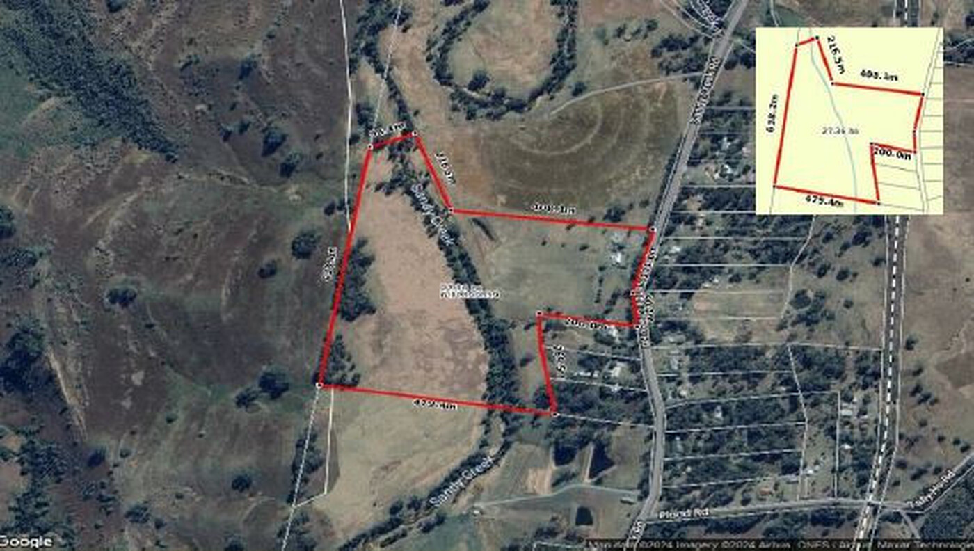 The entire road frontage is relatively level however the site then slopes down to Sandy Creek approximately halfway between the eastern and western boundaries.
