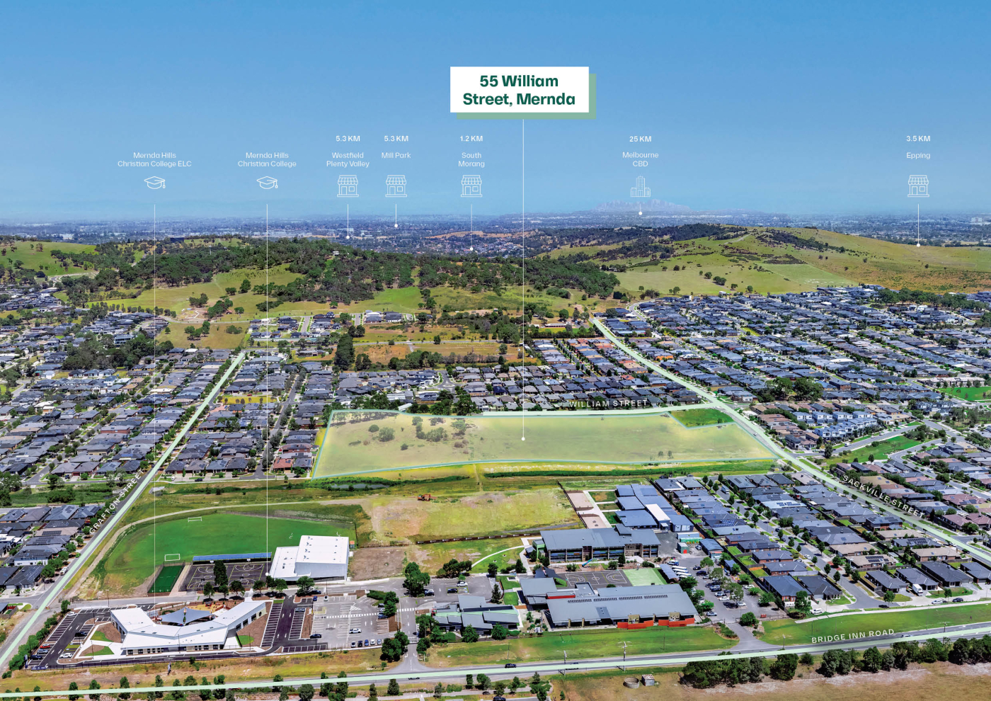 Abutting Mernda Hills Christian College & ELC and located close to Mernda Town Centre, Mernda Junction, and Mernda Train Station, the property benefits from excellent connectivity via Plenty Road and Bridge Inn Road, supporting ongoing demand for residential lots in this high-growth corridor.