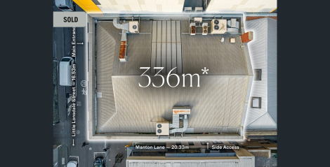 - Substantial blank canvas 2-level freestanding corner commercial building totalling 578 sqm* with dual access from Little Lonsdale Street & Manton Lane