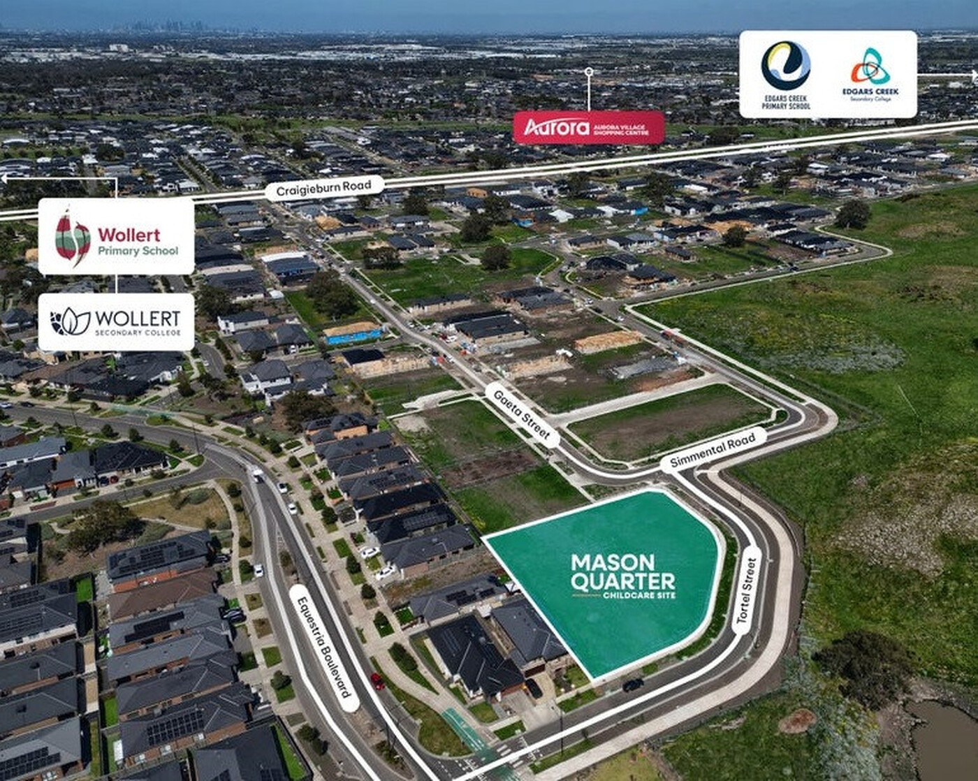 Located within the highly regarded Mason Quarter community in Wollert, developed by Cedar Woods Properties, this is a rare opportunity to secure a Permit Approved childcare site, with strong leasing interest from top-tier operators.