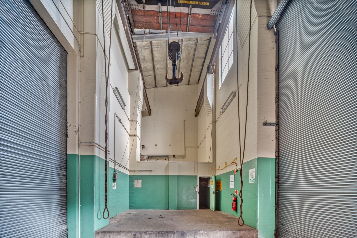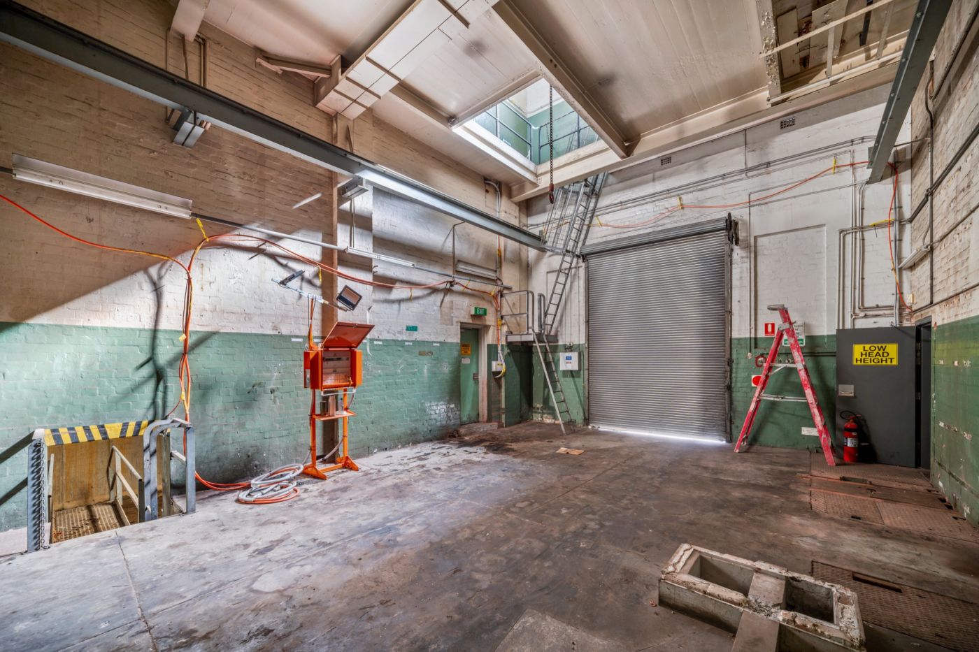 - Two level 1,074m² former substation featuring generous clearances, dual roller door access and an in-situ 2 tonne & 33-tonne overhead crane.