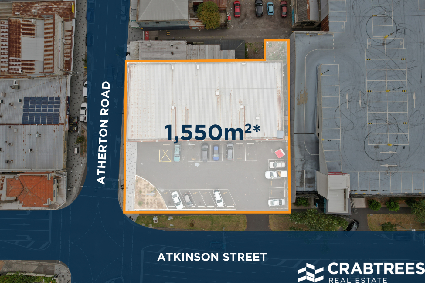 • 38 metre frontage to Atherton Road and 41 metre frontage to Atkinson Street and rear carriageway easement to council laneway