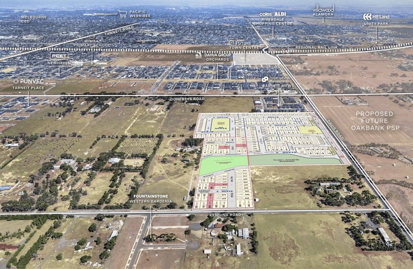 The site forms part of the gazetted Tarneit North PSP, located within the City of Wyndham and features expansive dual frontages with 400 metres to Davis Road, and a further 98 metres to Kenning Road.