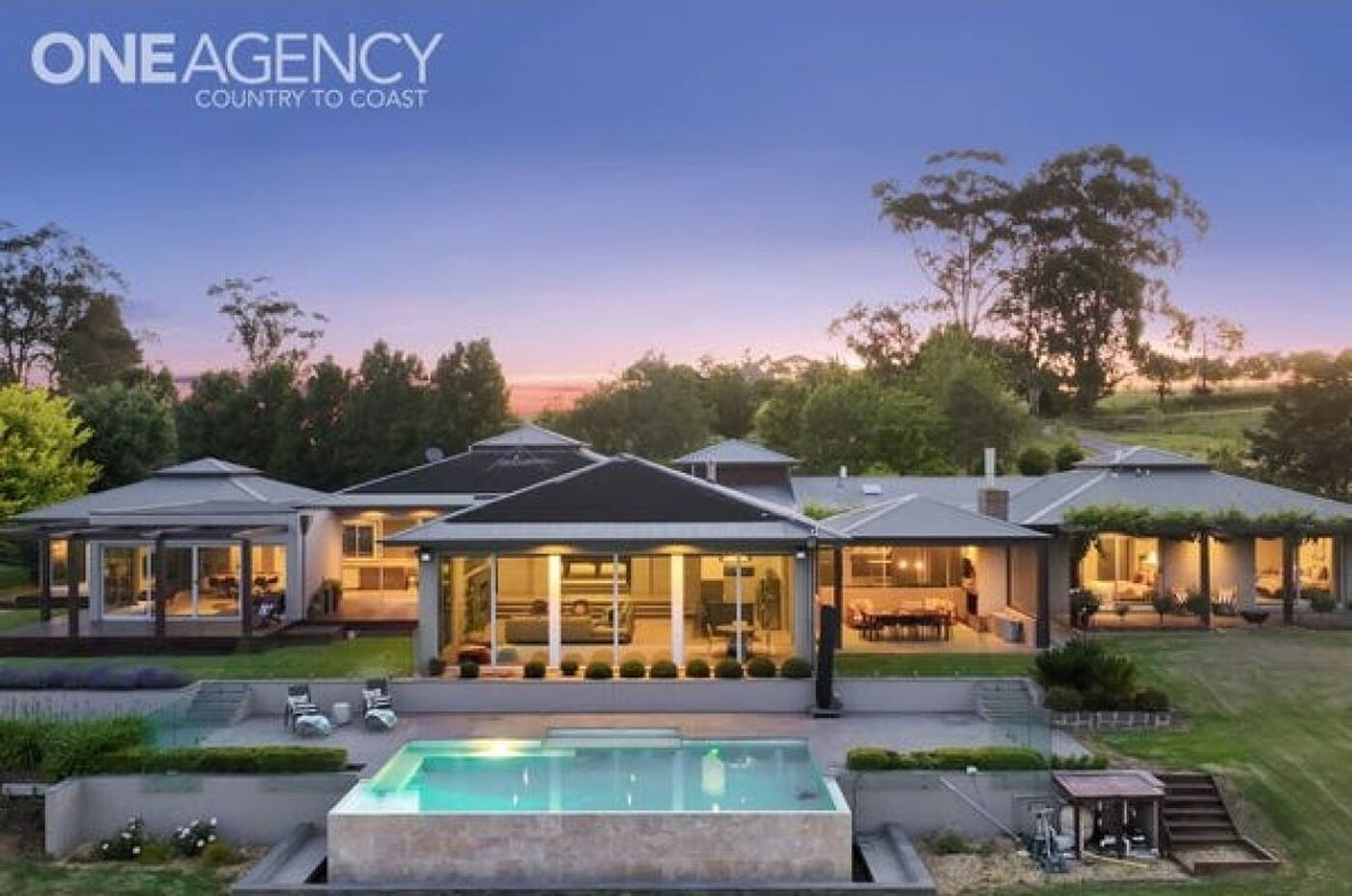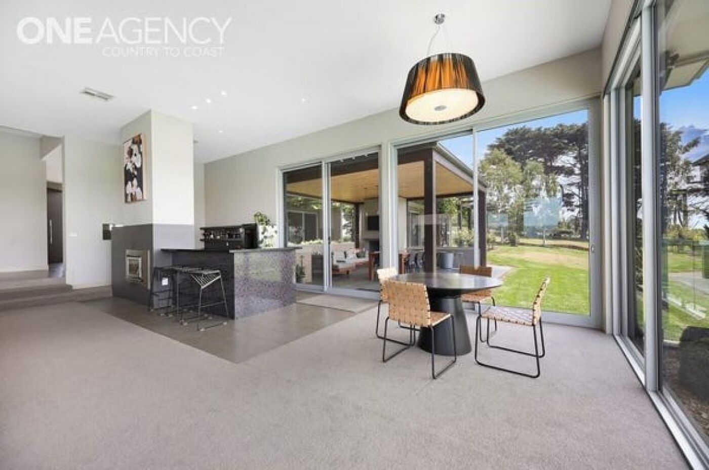 - Seamless connection to wide, sheltered and shady outdoor entertaining terraces with an open fire and salt water chlorinated, heated swimming pool