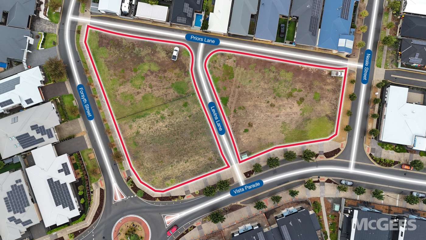 • Island sites with wide 73m* frontage to Vista Parade and facing Forsyth Street, Levins Lane, Priors Land and Neale Street