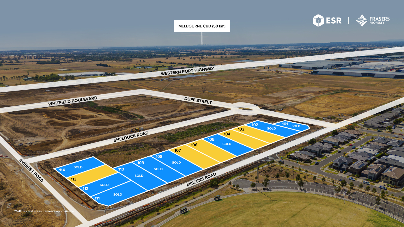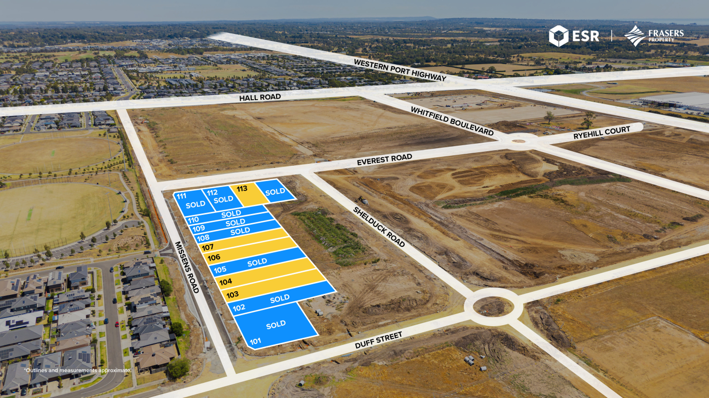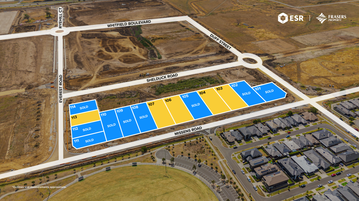 Located at 635 Hall Road, Cranbourne West, RISE Industrial Estate offers 14 premium industrial lots for sale via Private Treaty. RISE is delivered through the joint venture of ESR Australia & NZ and Frasers Property Industrial – two global leaders in industrial development. Their combined expertise ensures a world-class estate designed to meet the needs of modern businesses.