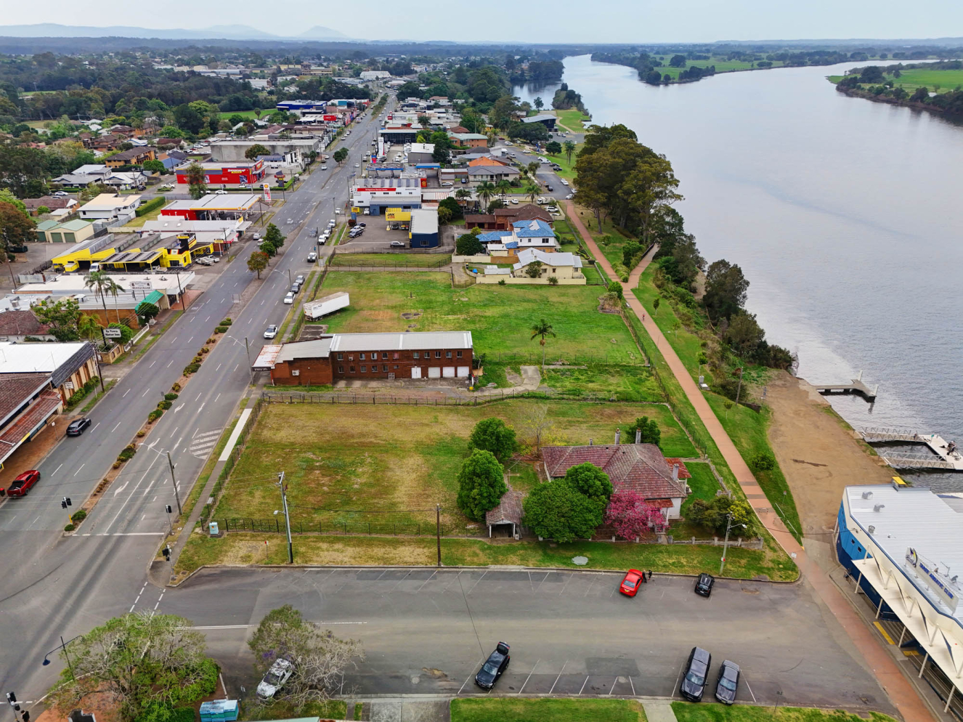 Strategically positioned at the gateway to the Taree Town Centre, the property occupies a prominent riverfront landholding of approximately 8,055 sqm* across nine lots.
