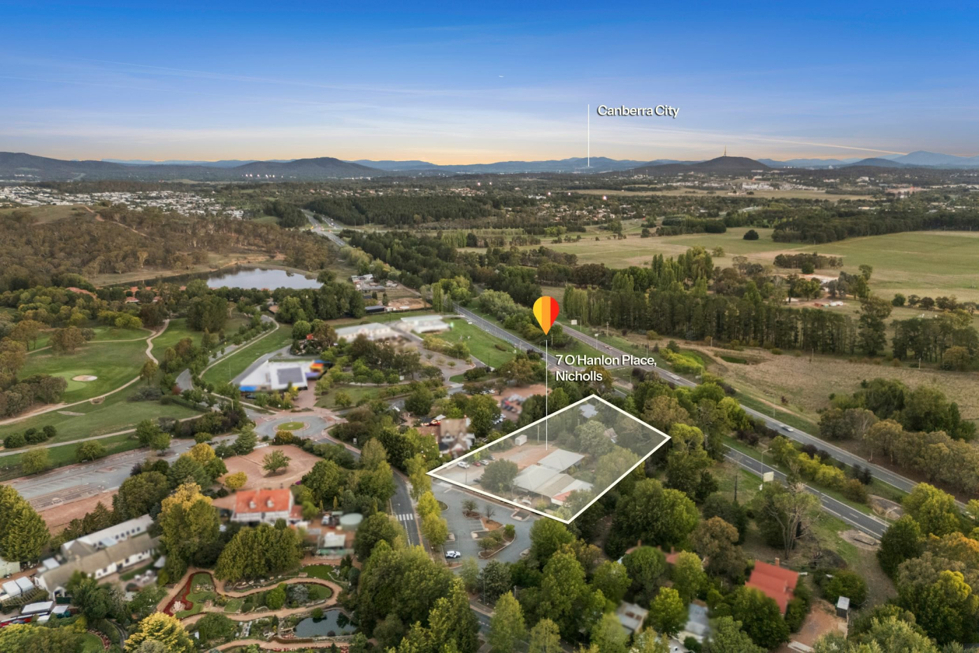 Gold Creek Village, on Nicholls' southern edge off the Barton Highway, includes the National Dinosaur Museum, Federation Square, Gold Creek Golf Course, Australian Reptile Centre, George Harcourt Inn, Ginninderra Village and Cockington Green. Ampol and BP Service Stations, McDonalds, KFC and a medical centre are also located in the Gold Creek Precinct. 7 O’Hanlon Place Nicholls is situated in close proximity to Gungahlin & Belconnen Town Centres, Northbourne Avenue, Federal Highway and Canberra’s CBD.