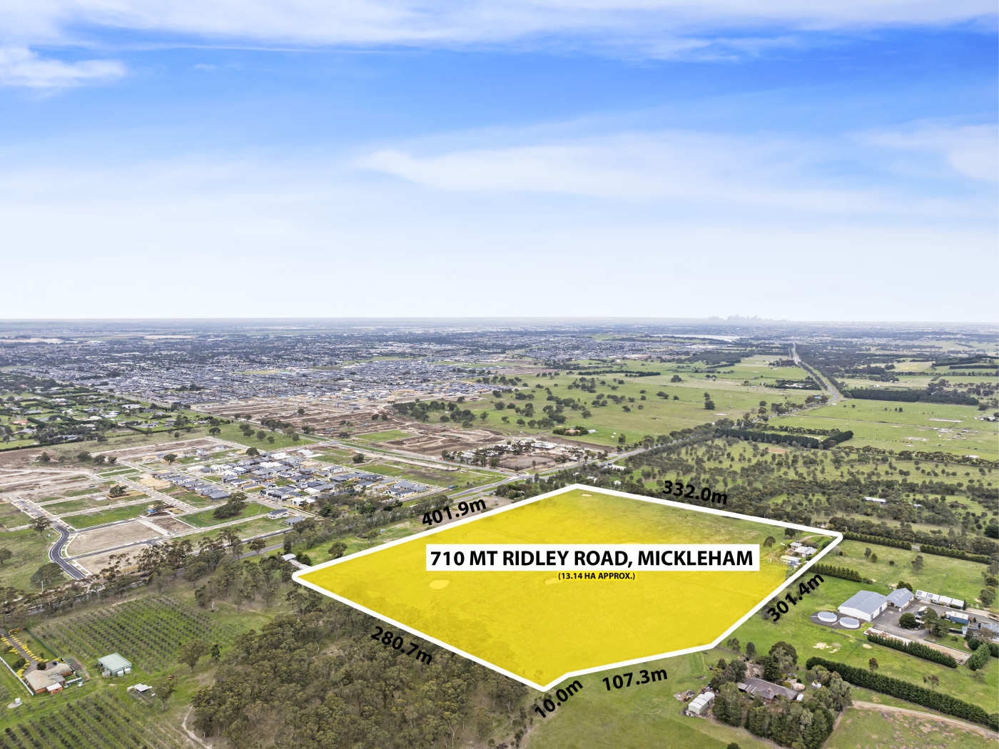 - 330m+ of Mount Ridley Road Frontage