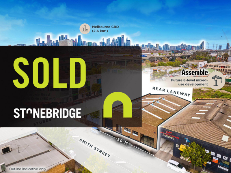 - Expansive 613 sqm* landholding improved by a flexible warehouse, rear access via laneway, 20+ meter frontage to Smith Street, and ability to split into two warehouses