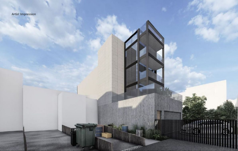 b) 4 storey building with 1 x retail, 2 x commercial suites plus Residential Penthouse (3 bedroom/2 bathroom), terraces, lift and 4 car parking (STCA) with rear lane access