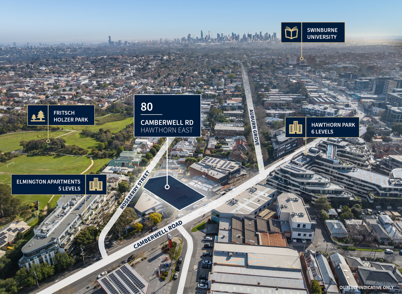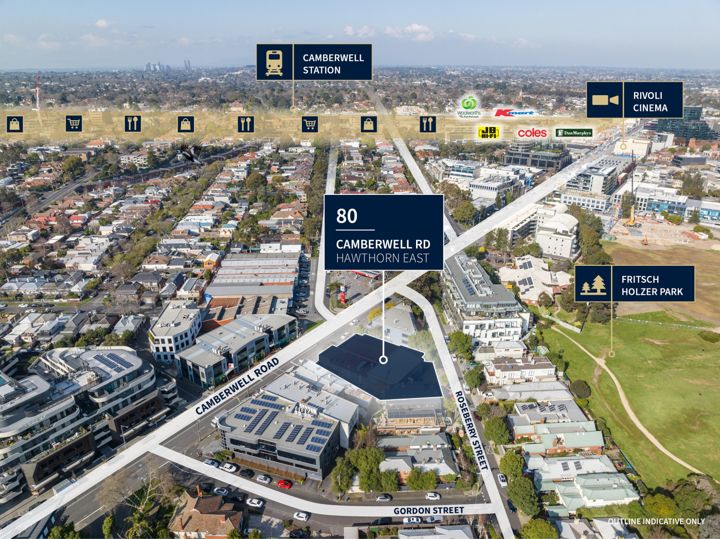 • Benefiting from two (2) street frontages with 52 m* of exposure to both Camberwell Road & Roseberry Street