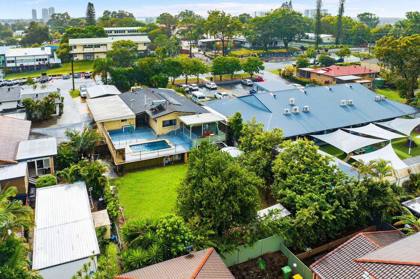 Additionally, explore your options to rent out the existing single level brick home while you wait to break ground. Freshly repainted and comfortable as is, it features five bedrooms, two bathrooms, multiple living areas and a generously sized kitchen. There's even a pool to beat the summer heat, accompanied by an elevated alfresco deck and expansive yard. With so much space, there's enticing potential to yield a healthy return.