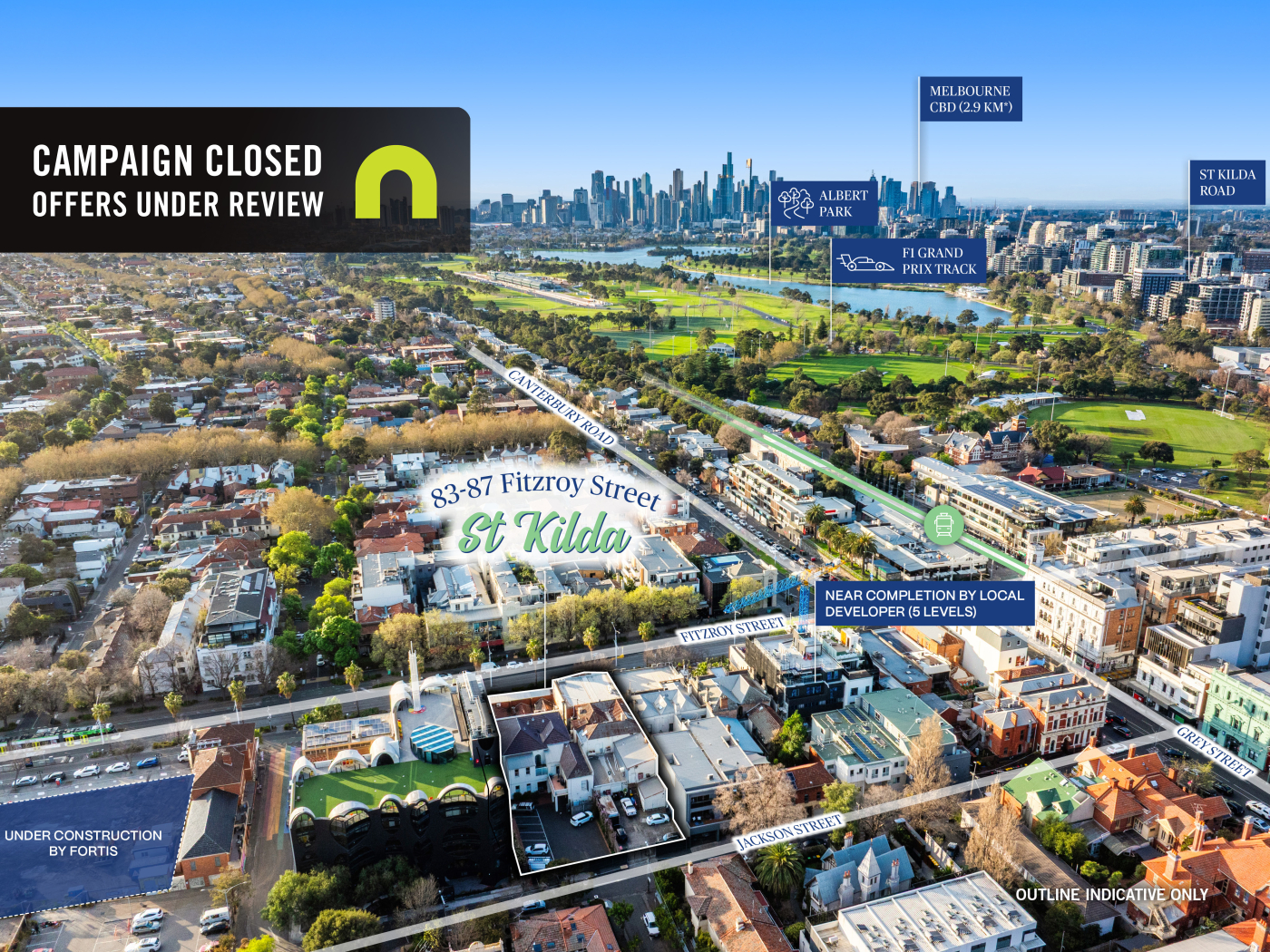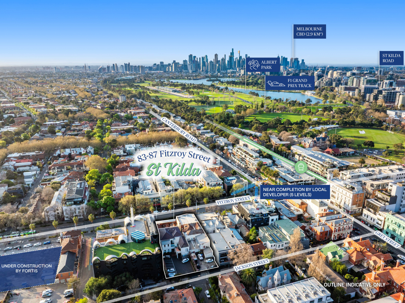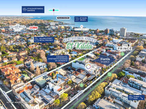 - Located within the heart of St Kilda undergoing rapid rejuvenation with major projects nearby and precedence of 5-level developments including the neighbouring Victorian Pride Centre and the Fortis’ 61-73 Fitzroy Street (under construction)
