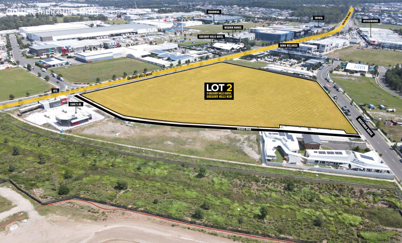 Located within the Gregory Hills Business Park amongst a large mix of large and small scale industrial, commercial and retail occupiers including Toyota, GKR Transport, Officeworks, Repco, Sydney Tools & Bunnings to name a few. The area also has a significant medical precinct with the SOMA Wellness development and the recently completed The George Centre, a private hospital operated by Acurio. Gregory Hills is the fastest growing business precinct within the South Western Sydney Growth area and is only a short distance to the soon to be completed Western Sydney Airport.