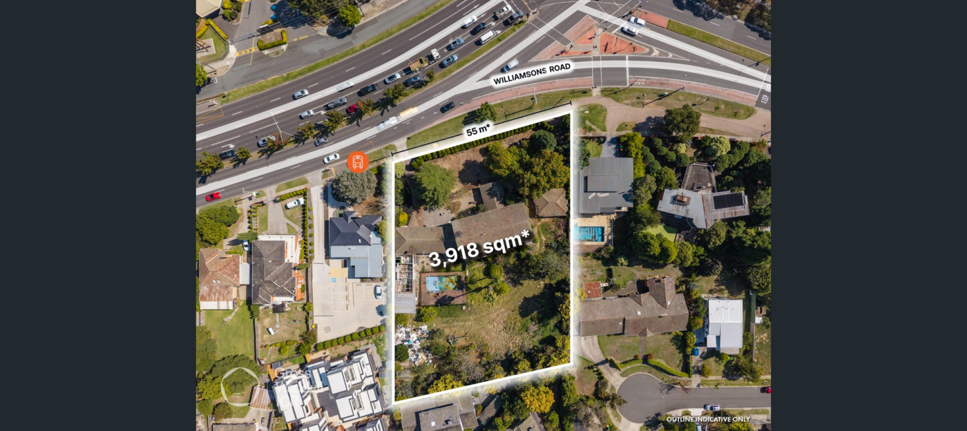 - Existing large double storey residence with elevated profile and vast 55m* frontage to Williamsons Road
