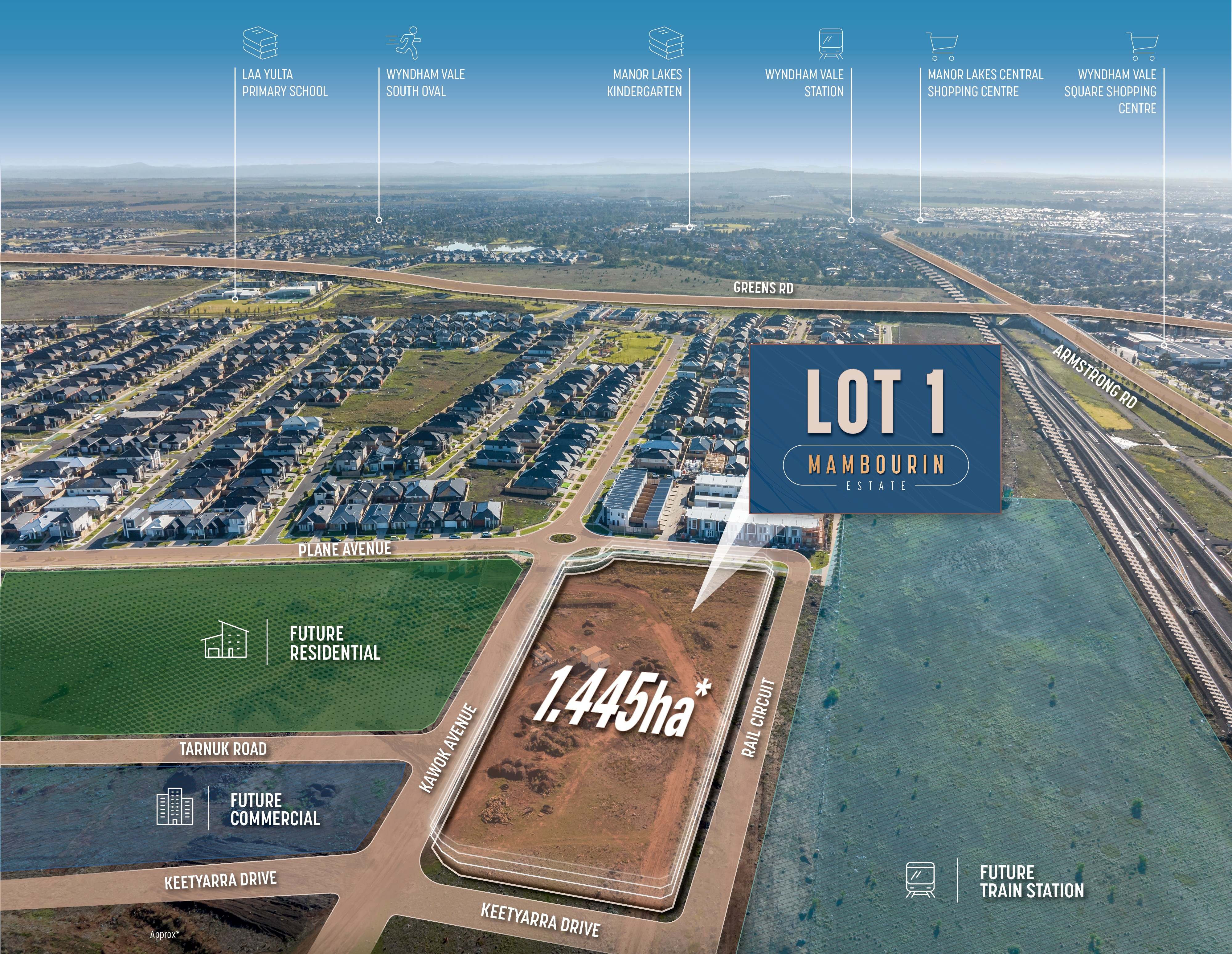 LAWD is delighted to present for sale Lot 1, 974 Black Forest Road - a rare PSP approved 1.445ha* development site positioned within Frasers Property’s highly sought-after 110ha* master-planned Mambourin Estate, situated in Melbourne’s rapidly growing south-west corridor.