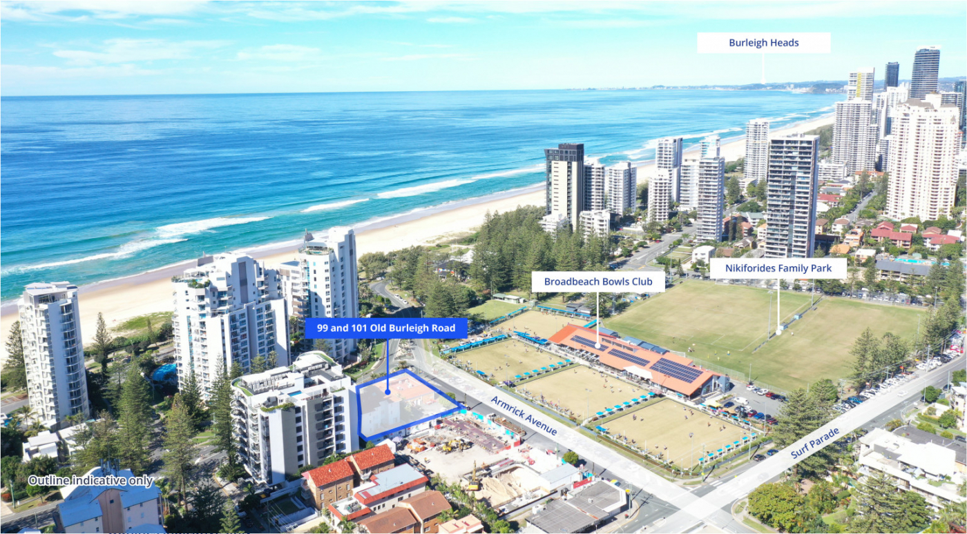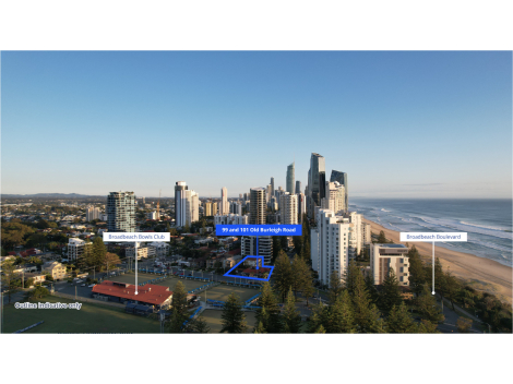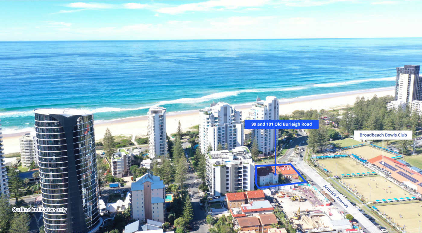 Colliers and Sutherland Projects, under instructions from Receivers and Managers, John Park and Kelly-Anne Trenfield of FTI Consulting, are pleased to offer 99 and 101 Old Burleigh Road, Broadbeach, Queensland for sale via an Expressions of Interest campaign.