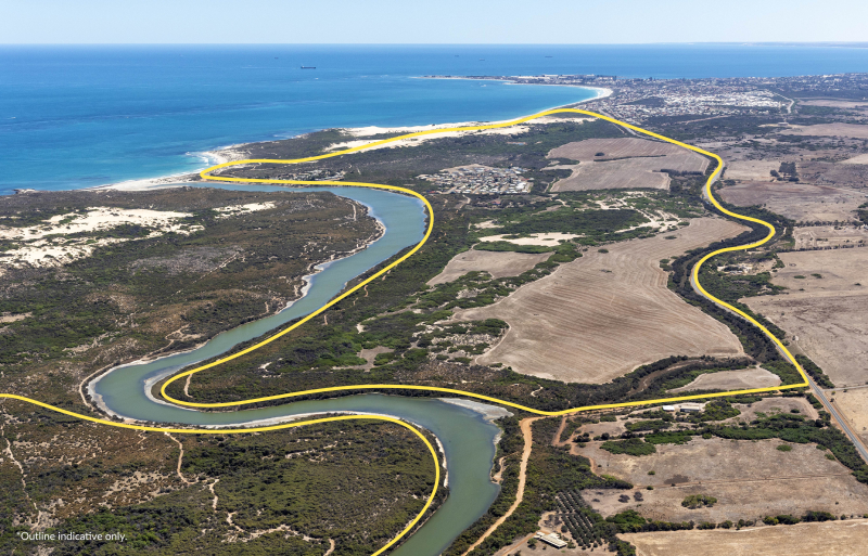 • 3.5km* of Indian ocean frontage and 3.5km* of Greenough River frontage