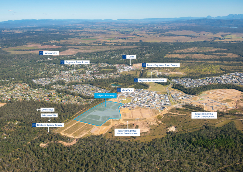 The opportunity is located within the greater Flagstone PDA which is situated within the Logan City Council local government area and is approximately 37 klms southwest of Brisbane’s CBD and seven klms west of Jimboomba. A concept plan yielding 316 sites has been prepared by the vendor and showcases a potential layout for a land lease community (STCA).