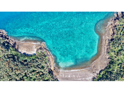 Keswick Island offers a 117-hectare land lease and 25-hectare marine lease, with idyllic island scenes of white sandy beaches and crystal clear waters, home to vibrant coral reefs and diverse marine life.