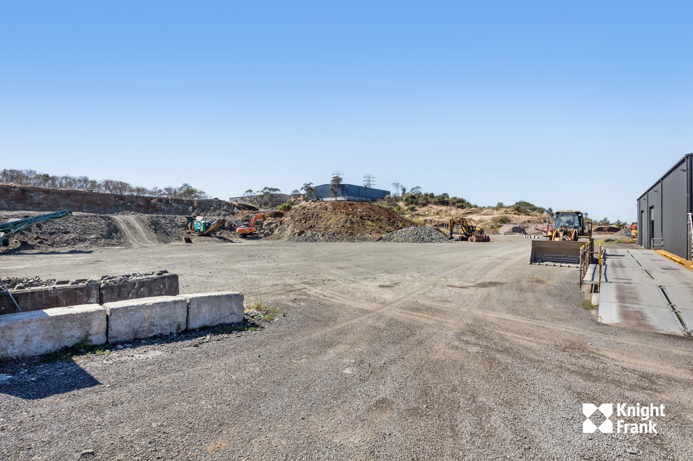- Hardstand site currently being cleared and benched with a number of machines on site, crushing rock and selling to local businesses