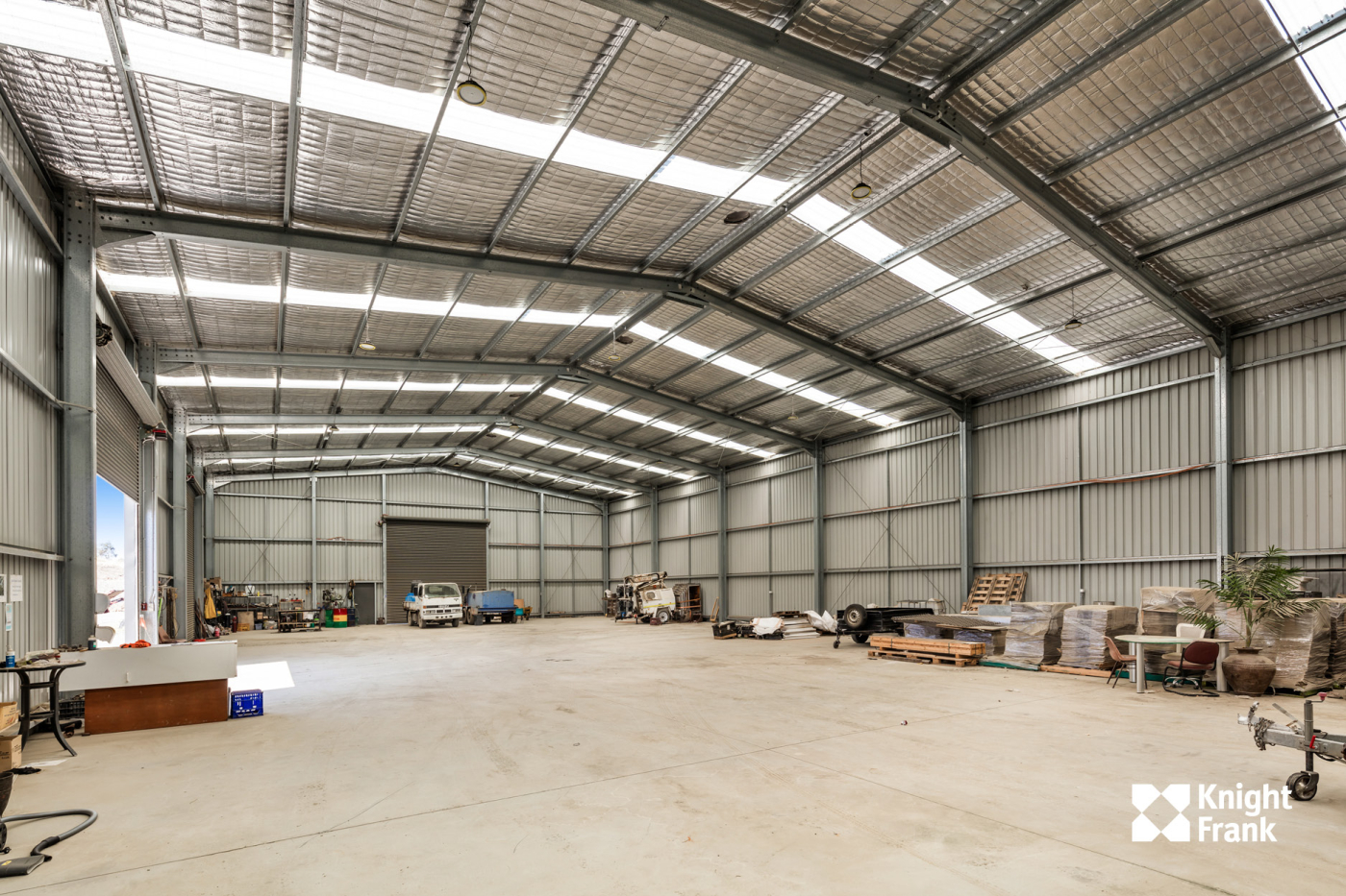 - 900 sqm* concrete floor storage shed with steel framed construction and power