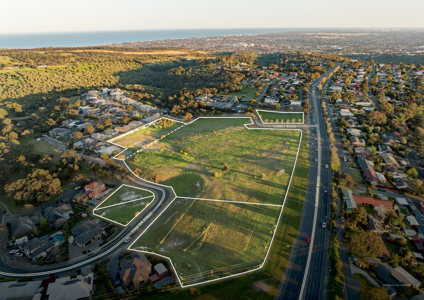 This landmark 5.24-hectare* development land amalgamation represents one of the last mixed-use development opportunities of scale in the region. Occupying a strategic position with significant frontage and access to Flagstaff Road, the site commands exceptional exposure to the intersection of Flagstaff Road and Blacks Road providing easy accessibility to the Southern Expressway and South Road.