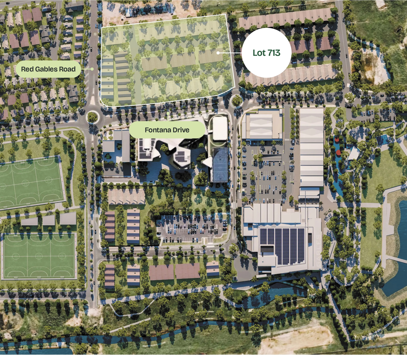 • Surrounded by established and future infrastructure including schools, retail, sporting fields, parks, and the forthcoming Gables Town Centre